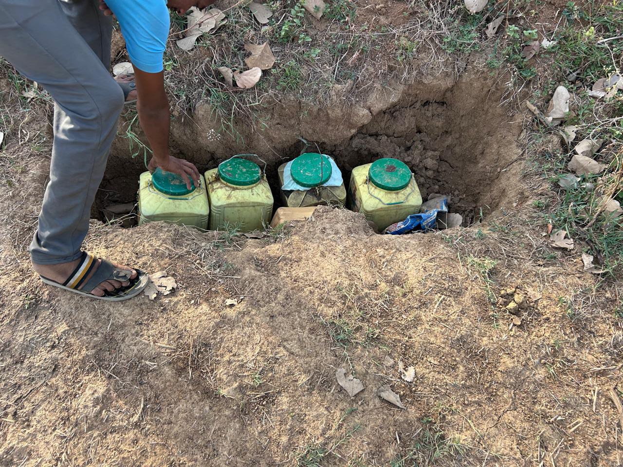 सारंगढ़ बिलाईगढ़, 30 मई 2024/आबकारी आयुक्त सह सचिव आर संगीता के निर्देश के तारतम्य में कलेक्टर श्री धर्मेश साहू एवं जिला आबकारी अधिकारी श्रीमति सोनल नेताम के मार्गदर्शन में आबकारी विभाग के वृत्त सारंगढ़ को सूचना मिली की ग्राम भोजपुर थाना सारंगढ़ में तालाब किनारे भारी मात्रा में अवैध कच्ची महुआ शराब का निर्माण किया जाता है, जिसे आसपास के क्षेत्रों में इसको विक्रय किया जाता है। सूचना की पुष्टि होने पर टीम के साथ बताए गए स्थान पर पहुंचे और वहां पर 105 लीटर कच्ची महुआ शराब तथा प्लास्टिक डिब्बों में भरा महुआ शराब बनाने के लिए महुआ लाहन जिसकी कुल मात्रा लगभग 540 किलोग्राम है, को जब्त किया गया। कच्ची महुआ शराब को कब्जा आबकारी कार्यालय में लिया गया एवम विधिवत रूप से महुआ लाहन का नष्टीकरण किया गया है l अज्ञात आरोपी के विरुद्ध छत्तीसगढ़ आबकारी अधिनियम धारा 34(1)(क) (च)34(2) का , प्रकरण कायम कर विवेचना में लिया गया है। आरोपियों की पतासाजी की जा रही है। इस कार्यवाही में स.जि.आब.अधि. आनंद वर्मा आबकारी आरक्षक गणेश धीरज मोहनलाल चौहान नगर सैनिक उमा सिदार का उल्लेखनीय योगदान रहाl
