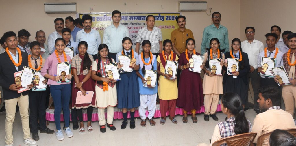 सारंगढ़-बिलाईगढ़, 30 मई 2024/कलेक्टर श्री धर्मेश कुमार साहू के मुख्य आतिथ्य में जिले के शासकीय और निजी स्कूलों के कक्षा दसवी और बारहवी के सीजी और सीबीएसई कोर्स के टॉपर बच्चों का जिला स्तरीय सम्मान समारोह 2024 का आयोजन सारंगढ़ में किया गया। कार्यक्रम का शुभारंभ छत्तीसगढ़ महतारी के समक्ष दीप प्रज्ज्वलित कर किया गया। कलेक्टर श्री धर्मेश कुमार साहू ने सभी प्रतिभावान टॉपर बच्चों को क्रमवार सम्मानित किया और सामूहिक रूप से सभी टॉपर बच्चों के साथ सामूहिक छायाचित्र लिया गया। इस अवसर पर सभी बच्चों ने आईएएस, डॉक्टर, इनकम टैक्स अधिकारी, शिक्षक बनने की इच्छा बताई और जिज्ञासा के प्रश्न पूछे गए जिसमें बच्चों ने सिविल सेवा की तैयारी के लिए सवाल किए। इसमें एक बालिका ने बारहवीं के 3-4 साल बाद कैरियर और शादी दोनों का एक साथ समय अवधि में अवसर आता है तब क्या करना चाहिए। इन सभी के जवाब अधिकारियों ने क्रमशः दिए। कार्यक्रम के अंत में अधिकारियों, टॉपर बच्चों और उनके अभिभावकों ने दोपहर का भोजन किए।