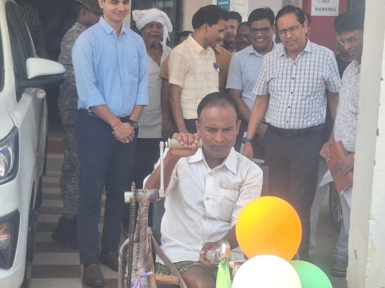 सारंगढ़ बिलाईगढ़, 6 जून 2024/जिले के सारंगढ़ विकासखंड के ग्राम मुड़पार बड़े पोस्ट चांटीपाली के दिव्यांग श्री भभीखन साहू को कलेक्टोरेट सारंगढ़ के मुख्य द्वार में कलेक्टर श्री धर्मेश कुमार के मुख्य आतिथ्य में पुलिस अधीक्षक श्री पुष्कर शर्मा ने समाज कल्याण विभाग के माध्यम से ट्रायसायकल प्रदान किया। यह ऐसी घटना है जिसमें ट्रायसायकल मिलने से दिव्यांग श्री भभीखन से कई गुना खुशी कलेक्टर श्री धर्मेश साहू के चेहरे में अथाह खुशी की मुस्कुराहट और पुलिस अधीक्षक श्री पुष्कर शर्मा के चेहरे में मुस्कुराहट दिखाई दिए। यह आत्मिक शांति और एक भला कार्य समाज कल्याण विभाग के नाम को वास्तविक पहचान दिलाता है। ये भी गौर करने वाली बात है कि कलेक्टर श्री साहू के नाम अनुरूप धर्म के देव (धर्मेश) हैं। अब दिव्यांग श्री साहू को जब तक ट्रायसायकल साथ दें तब तक उनके दैनिक जीवन के कार्यों में सहूलियत मिलेगा।
