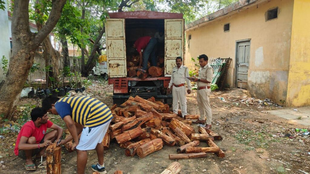 महासमुंद वन मंडलाधिकारी पंकज राजपूत एवं अनिल भास्करन उप वन मंडलाधिकारी सरायपाली के निर्देशन में प्रत्युष टाण्डेय परिक्षेत्र अधिकारी सरायपाली के कुशल मार्गदर्शन में मुखबिर की सूचना पर सरायपाली परिक्षेत्र अंतर्गत बेलटिकरी से सागरपाली मार्ग के बीच में वाहन की तलाशी के दौरान दिनांक 7.6.2024 को लगभग शाम 6 बज के 10 मिनट में टाटा 407 वाहन क्रमांक CG 05 D 0804 को रोक कर जांच किया गया,जांच के दौरान उस वाहन पर गिला खैर प्रजाति का लकड़ी मिला l