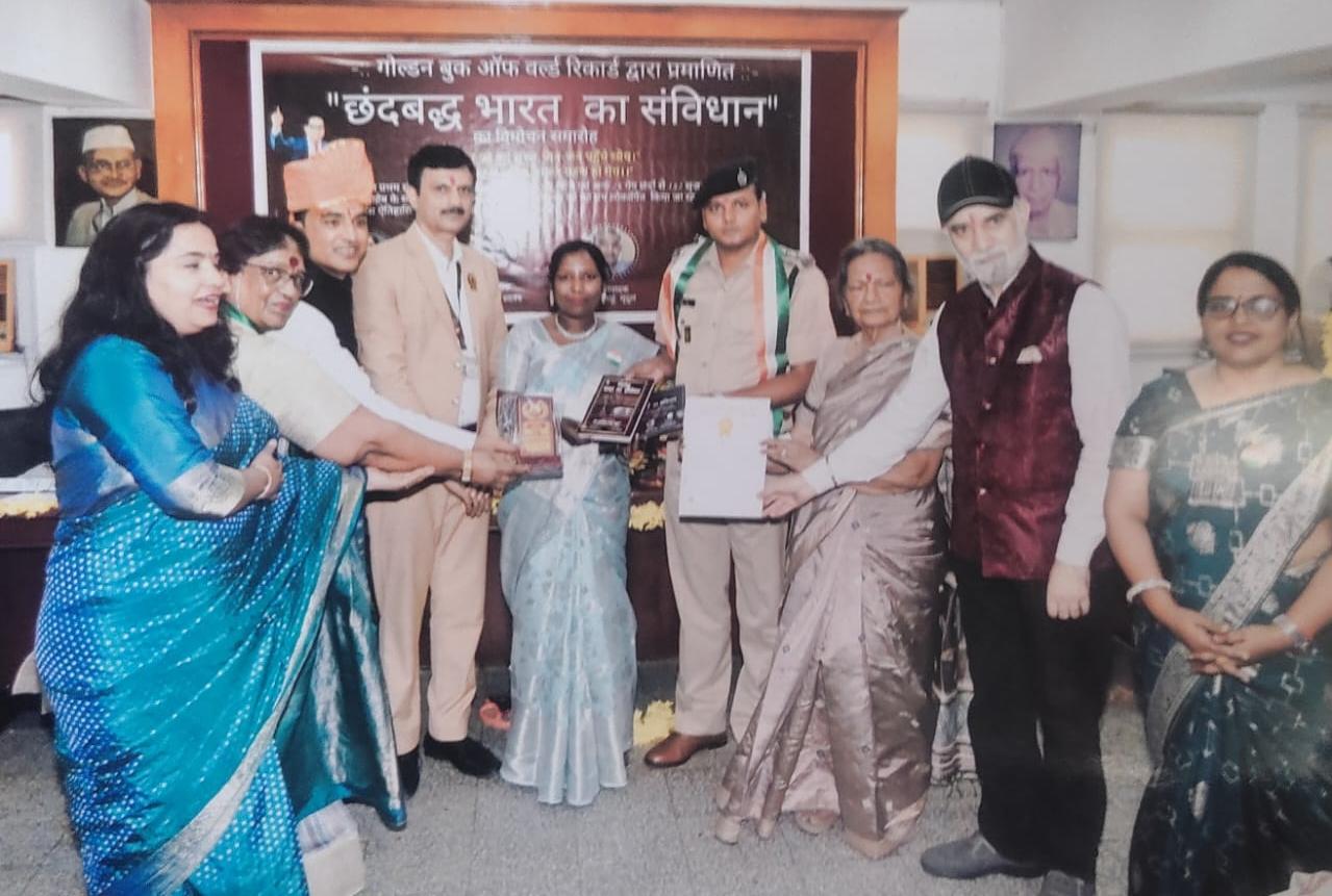गोल्डन बुक ऑफ वर्ल्ड रिकॉर्ड में डॉ.ओमकार साहू मृदुल,सपना दत्ता सुहासिनी और डॉ.मधु शंखधर द्वारा संपादित पुस्तक”छंदबद्ध भारत का संविधान”का हिन्दी भवन दिल्ली में भव्य विमोचन हुआ।