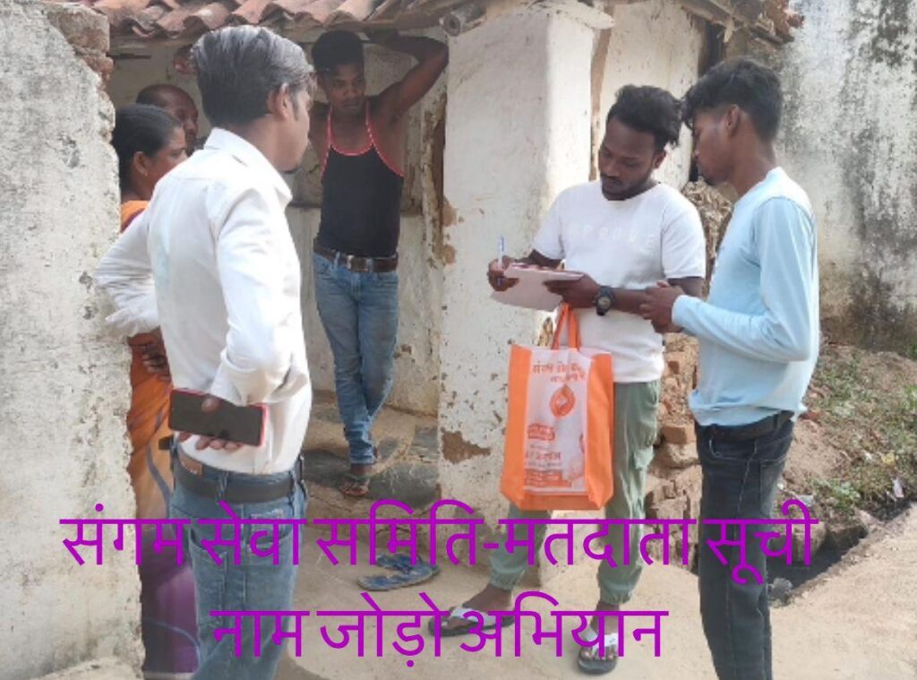 सराईपाली की प्रतिष्ठित सेवा समिति संगम सेवा समिति द्वारा सराईपाली नगर छेत्र में नये मतदाताओं का नाम जोड़ने के लिए हर घर-घर,हर वार्ड-वार्ड अभियान चला कर नाम जोड़ने का कार्य आरंभ किया गया है,जिसके तहत 18 वर्ष आयु सीमा पूर्ण करने वाले लोगो का नाम मतदाता सूची में जोड़ा जा रहा है,जिसके लिये संगम सेवा समिति के सदस्य हर घर जाकर ऐसे लोगो को चिह्नांकित कर रहे है जिनका नाम मतदाता सूची में नही है ऐसे लोगो का नाम जुड़वाने में मदत करेंगे,इस विषय पर समिति के संस्थापक प्रखर अग्रवाल ने मीडिया को बताया कि हमारा उद्देश्य लोगो को मतदान के प्रति जागरूक करना है और नये लोगो का नाम मतदाता सूची में जोड़ कर नये मतदाताओं को उनके वोट के महत्व को समझाना है और जिसे भी अपना मतदाता सूची में नाम जुड़वाना हो वह समिति के कार्यालय में संपर्क कर सकते है इस कार्य में समिति के सदस्य तुषार सेन,आशीष सेन,आयुष साहू,तरुण गड़तिया,अमित पटेल,प्रखर शर्मा,रिंकु पटेल,अमन ठाकुर,विजय नाग,अभिनय शाह,अभय नंद का विशेष योगदान है !