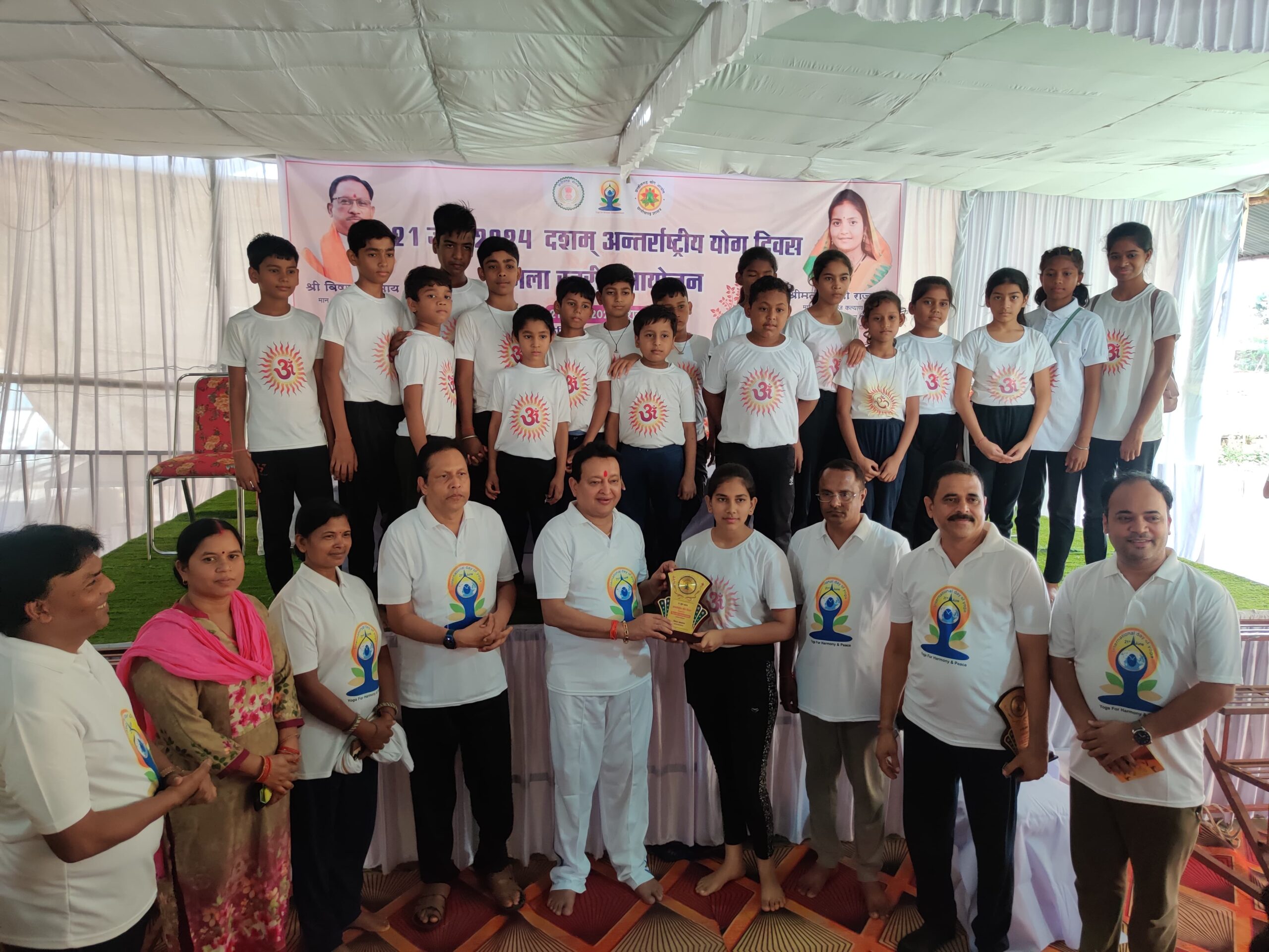 कलेक्टर श्री धर्मेश साहू ने कहा कि योग जीवन का अंग है इसे सभी लोग अपनाए और अपने परिवार, दोस्त आदि को भी अपनाने के लिए प्रेरित करें। इस अवसर पर सुभाष जालान, अरविंद हरिप्रिय, अजय गोपाल, अमित अग्रवाल, शिवकुमारी चौहान, पुलिस अधीक्षक पुष्कर शर्मा, नोडल अधिकारी योग हरिशंकर चौहान, पत्रकारगण, प्रांजल सेवा संस्थान के दिव्यांग बच्चे, अधिकारी कर्मचारी सहित बड़ी संख्या में महिला और पुरुष उपस्थित थे। कार्यक्रम का आयोजन समाज कल्याण विभाग के उप संचालक विनय तिवारी के समन्वय से किया गया।
