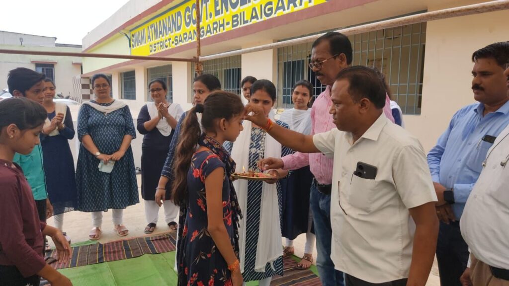 सारंगढ़ बिलाईगढ़ 26 जून 2024/ जिले के स्वामी आत्मानंद शासकीय इंग्लिश मीडियम स्कूल बरमकेला में हर्षोल्लास के साथ शाला प्रवेश उत्सव मनाया गया। इस कार्यक्रम के मुख्य अतिथि नगर पंचायत अध्यक्ष हेमसागर नायक, विशिष्ट अतिथि नगर पंचायत उपाध्यक्ष रामकुमार नायक एवं जिला शिक्षा अधिकारी एस.एन.भगत, सीएमओ अनिल सोनवानी, पार्षद सहित पालक एवं गणमान्य नागरिक उपस्थित थे। अतिथियों का पुष्प गुछ से स्वागत किया गया। सर्वप्रथम नन्हे-मुन्ने बच्चों विद्यार्थियों को आरती उतारकर तिलक लगाकर स्वागत किया गया।