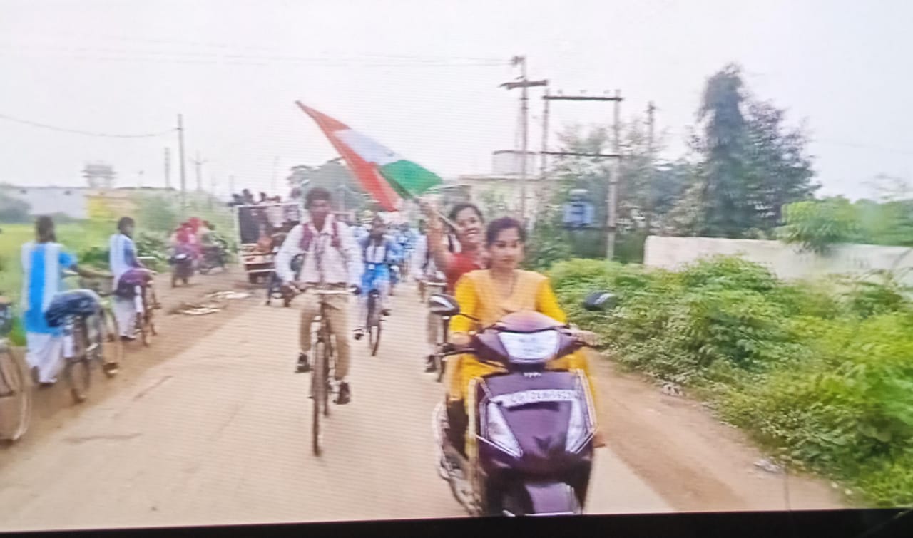 सारंगढ़ बिलाईगढ़, 13 अगस्त 2024/ हर घर तिरंगा कार्यक्रम अंतर्गत शासकीय उच्चतर माध्यमिक विद्यालय हरदी द्वारा तिरंगा बाइक और सायकल रैली का आयोजन किया गया। प्राचार्य विभावरी ठाकुर और व्यायाम शिक्षिका ममता साहू सहित अन्य शिक्षकों और विद्यार्थियों की टोली हाथ में तिरंगा झंडा लिए भारत माता की जय, वंदे मातरम आदि देशप्रेम के उल्लास, उमंग भरे नारों ने हरदी और आसपास क़े ग्रामीणों को देशप्रेम की भावना से सराबोर किया है।