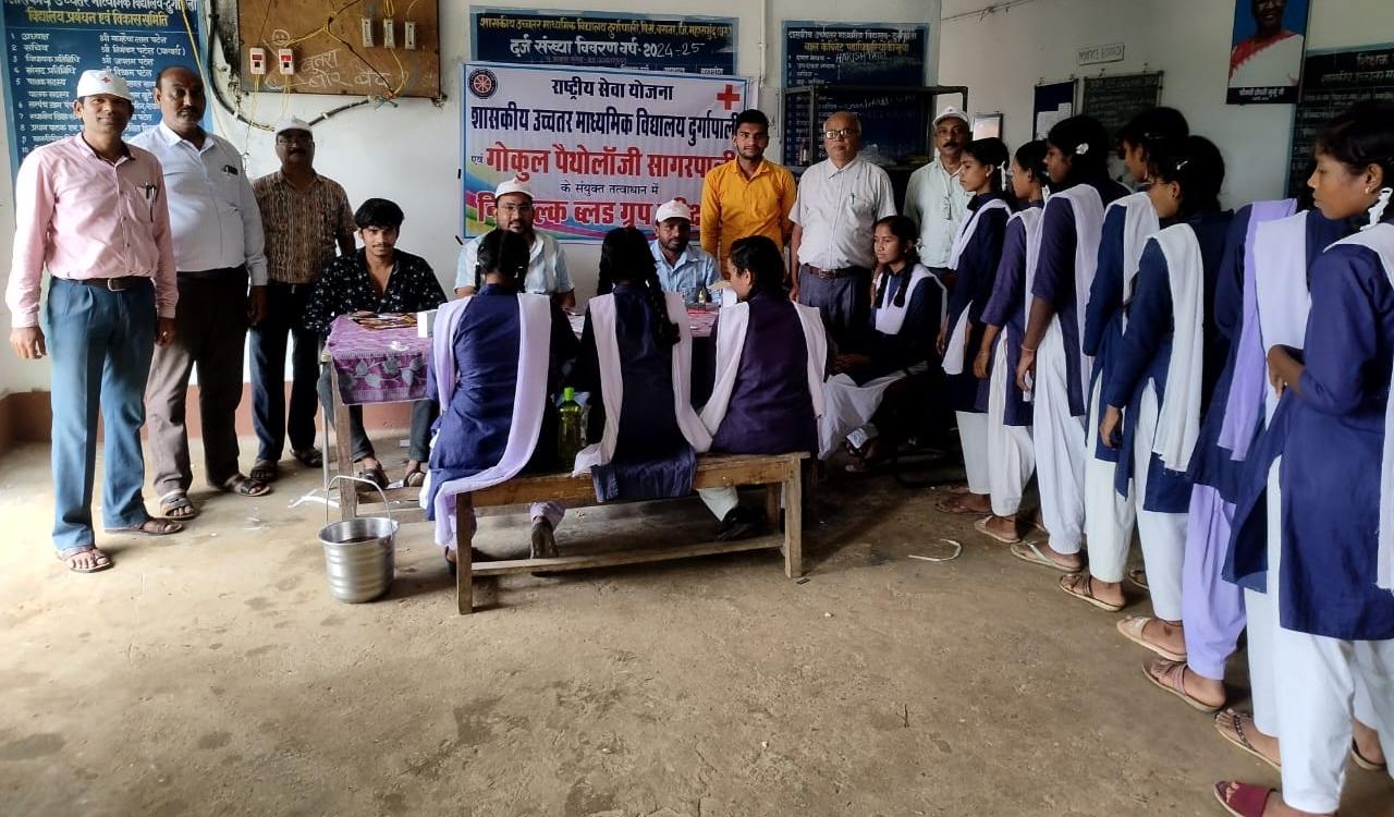 राष्ट्रीय सेवा योजना इकाई,जूनियर रेडक्रॉस सोसायटी शासकीय उच्चतर माध्यमिक विद्यालय दुर्गापाली एवं गोकुल पैथोलॉजी सागरपाली के संयुक्त तत्वाधान में प्राचार्य निमंकर पटेल के मार्गदर्शन में विद्यालय के कक्षा ग्यारहवीं एवं बारहवीं के स्वयं सेवकों का निःशुल्क ब्लड ग्रुप का परीक्षण किया गया।