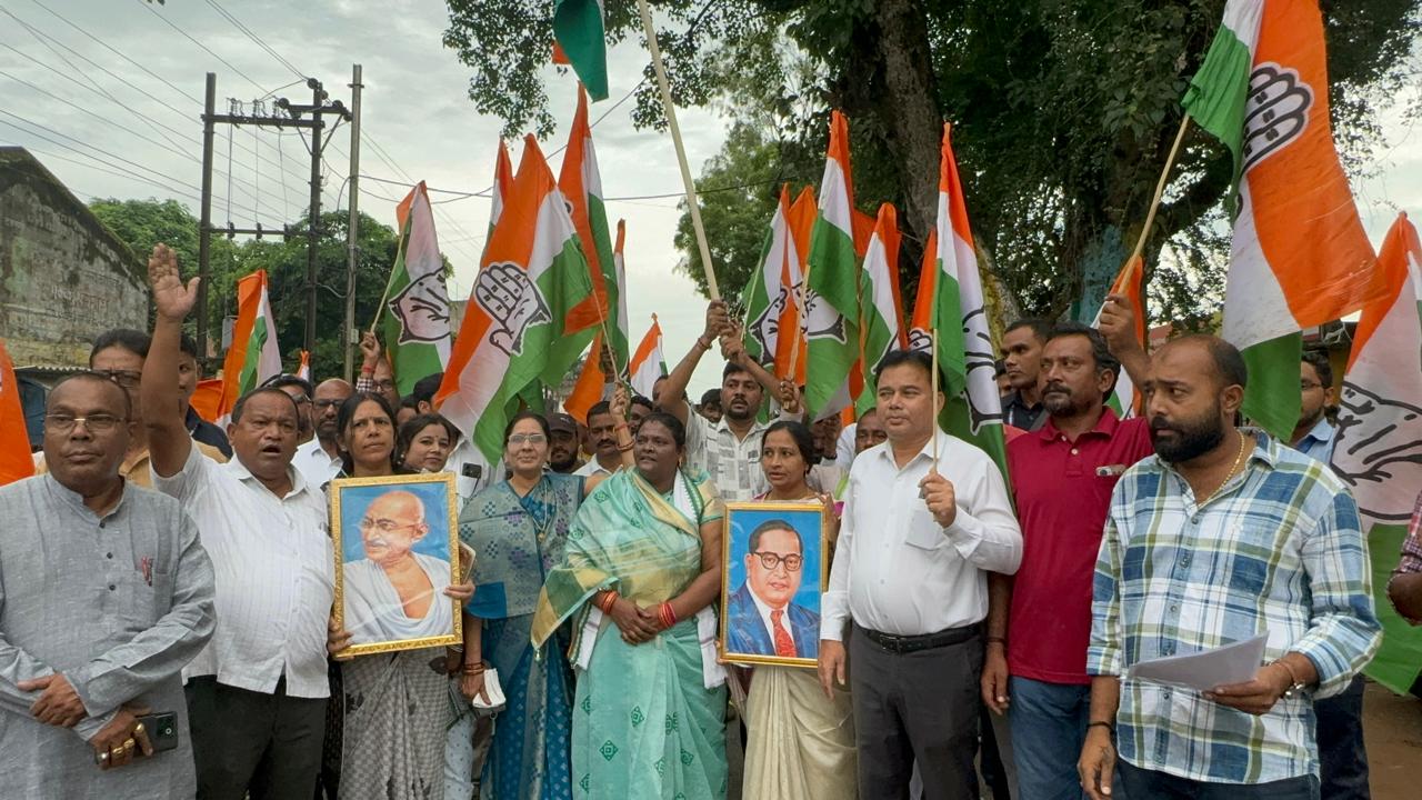 यात्रा विधायक कार्यालय से होकर जय स्तंभ चौक पहुंची जहां संविधान वाचन किया गया।