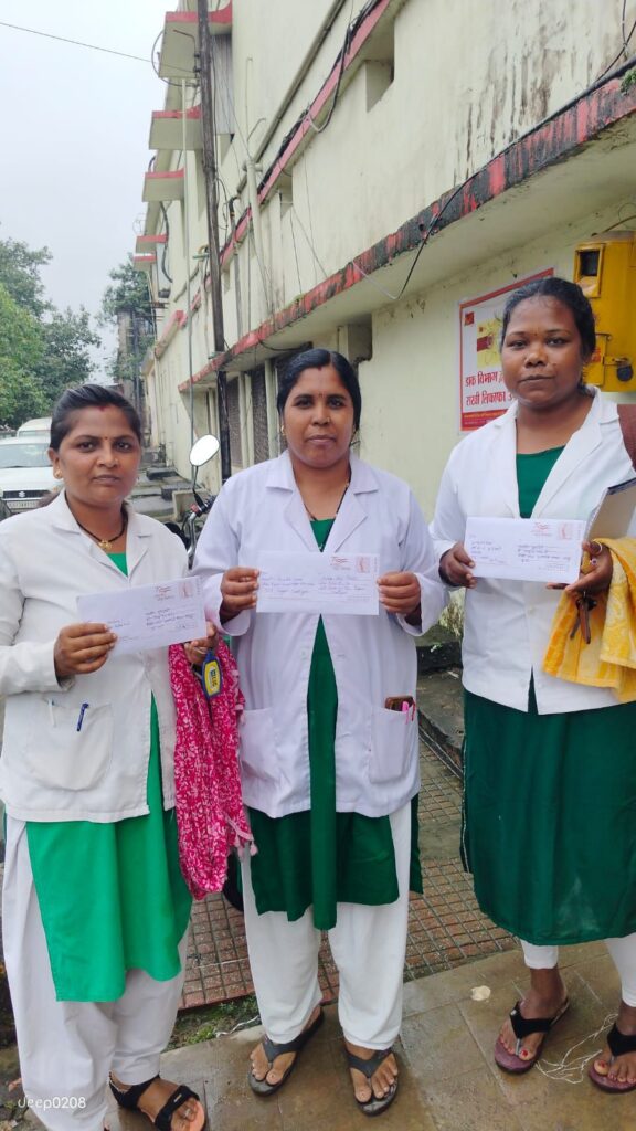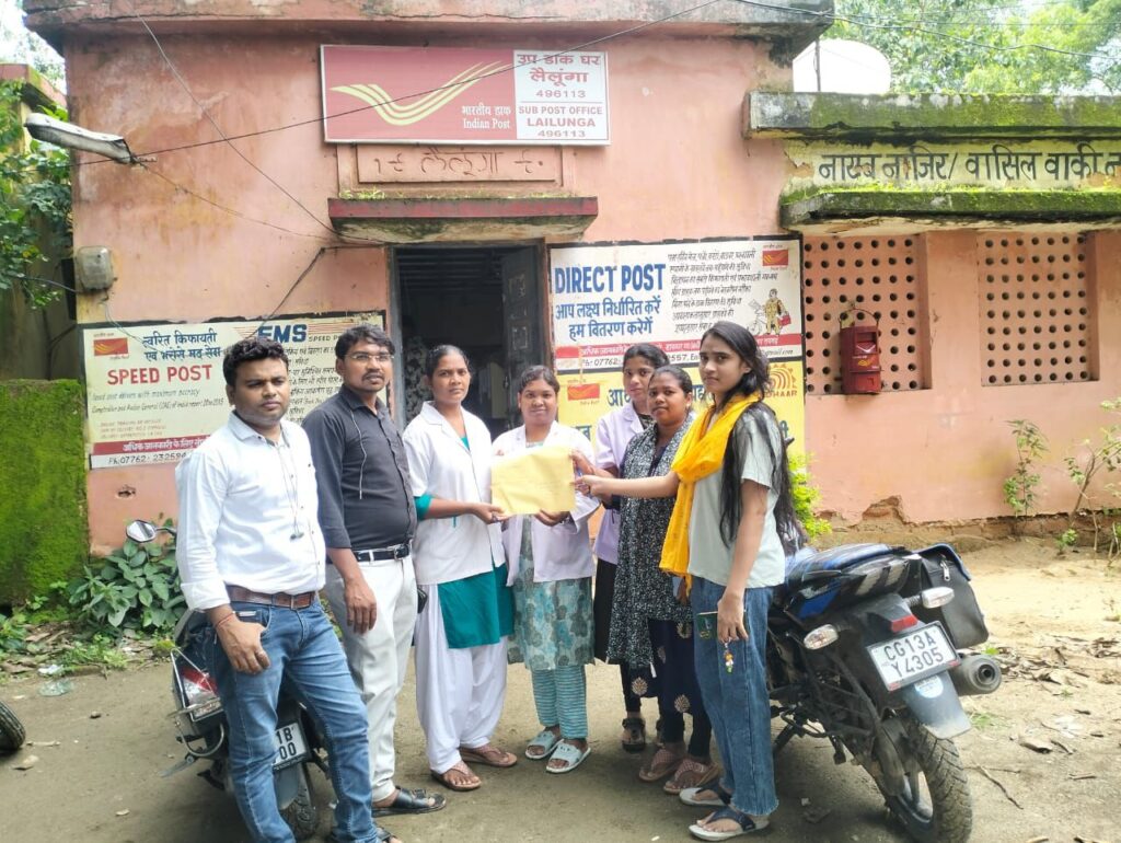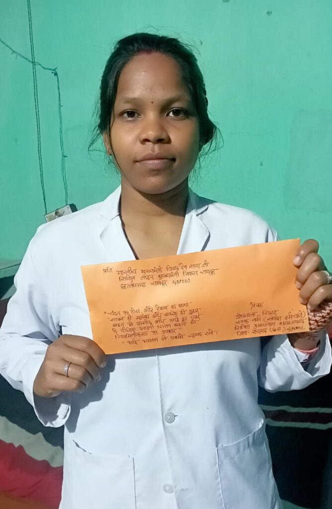 - राष्ट्रीय स्वास्थ्य मिशन के संविदा कर्मी लंबित 27 प्रतिशत वेतन वृद्धि एवं नियमितीकरण के मांग का उल्लेख कर मुख्यमंत्री विष्णु देव साय के पते पर पोस्ट ऑफिस में स्पीड पोस्ट किया गया