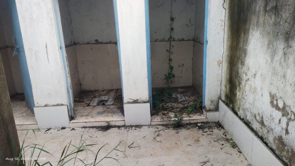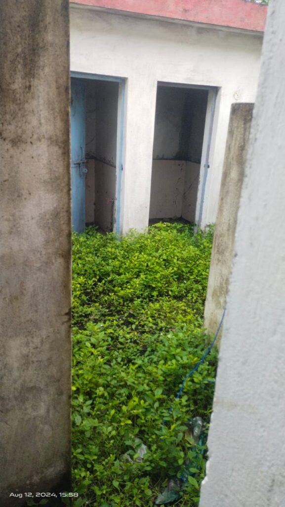 सार्वजनिक शौचालय के अन्दर झाड़ियों व गंदगी का ढेर।