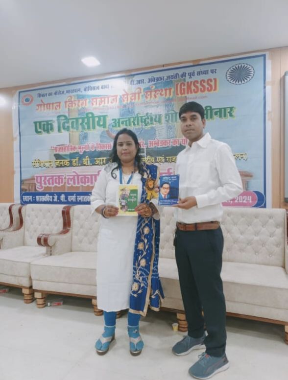 बिलासपुर, छत्तीसगढ़। गोपाल किरण समाज सेवी संस्था के तत्वावधान में जेपी वर्मा कॉलेज में सेमिनार व पुस्तक विमोचन समारोह का आयोजन किया गया। कार्यक्रम में जेपी वर्मा कॉलेज के प्रिंसिपल डॉ एस एल निराला, रिटायर्ड जेल अधीक्षक राजेंद्र रंजन गायकवाड, डीएसपी अनिता प्रभामिंज, लक्ष्मणेश्वर कॉलेज खरौद के डॉ जीसी भारद्वाज, शिक्षिका जलेश्वरी गेंदले विशेष रूप से उपस्थित थे। कार्यक्रम की अध्यक्षता संस्था के अध्यक्ष श्रीप्रकाश निमराजे ने की। शिक्षाविदों ने प्रजातंत्रिक मूल्यों के विकास में डॉक्टर भीमराव अम्बेडकर के योगदान पर अपने अपने विचार प्रकट किये। इस अवसर पर दो पुस्तकों संविधान जनक डाॅ बीआर अम्बेडकर (साझा संग्रह) अधि. मणिशंकर दिवाकर संपादक, सह संपादक मंजू लता मेरसा,व संयोजक उमाशंकर दिवाकर और “कला संस्कृति” मंजू लता मेरसा (कृष्णा मानसी), संग्रह का विमोचन किया गया।