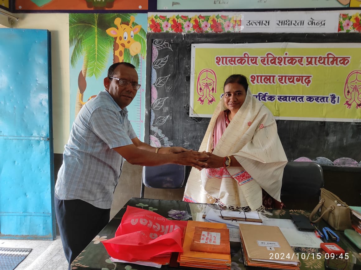रायगढ़ -शासकीय रविशंकर प्राथमिक शाला रायगढ़ में आज दिनांक 15 अक्टूबर 2024 को श्री नागेन्द्र आचार्य वरिष्ठ व्याख्याता शासकीय हाई स्कूल रामभांठा रायगढ़ ने डॉ.मनीषा त्रिपाठी को शाला पहुंचकर उन्हें शिक्षा, साहित्य, समाज सेवा, नवाचार, रचनात्मक गतिविधियों के साथ शाला एवं विद्यार्थियों के हित एवं विकास हेतु निष्ठापूर्वक किए गए कार्यों की प्रशंसा करते हुए राज्यपाल पुरस्कार से अलंकृत होने पर आत्मीयता के साथ शाल और श्रीफल देकर शाला, संकुल,उत्कल समाज ही नहीं अपितु रायगढ़ जिले का गौरव कहकर सम्मानित किया। वास्तव में आप राज्यपाल पुरस्कार की वास्तविक हकदार हैं, अपनी बहिन डॉ.मनीषा त्रिपाठी को राज्यपाल पुरस्कार से विभूषित होने पर मैं भी स्वयं गौरवान्वित हुआ हूॅं, मैं आपकी कर्मठता और दूरदर्शिता का कायल हूॅं विचार अभिव्यक्त कर उज्जवल भविष्य की शुभकामनाएं एवं बधाइयां संप्रेषित कीं।