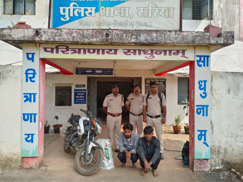 प्रकरण में दिनांक 06.11.2024 को दोपहर करीबन 14:20 बजे घटनास्थल पुलिस थाना सरिया के सामने मेन रोड पर मुखबीर की सुचना पर ओडिसा राज्य से छत्तीसगढ़ होते उत्तर प्रदेश राज्य की ओर जा रहे आरोपीयान-1. अंकित यादव पिता स्व० शिवकुमार यादव उम्र 19 वर्ष साकिन विनोबानगर गांधीग्राम त्रिमुर्ती मंदिर बगल गली थाना चकेरी जिला कानपुर (उ०प्र०) 2. प्रेम साहू पिता स्व० हरेष साहू उम्र 21 वर्ष साकिन सफीपुर गांधीग्राम त्रिमुर्ती मंदिर थाना चकेरी जिला कानपुर (उ०प्र०) के कब्जा से एक सफेद काला रंग पल्सर एनएस 125 क्रमांक यूपी 78 एचई 1125 में सीट पर बैग में रखकर ले जा रहे कुल 10 किलोग्राम मादक पदार्थ गांजा एवं 02 मोबाईल फोन तथा परिवहन में प्रयुक्त एक पल्सर एनएस 125 मोटर सायकल कमांक यूपी 78 एचई 1125 कुल कीमती 190000 रू0 को जप्त कर आरोपीयों के विरूद्ध थाना सरिया में अप०के०- 173/2024 धारा 20 (बी) एनडीपीएस एक्ट अपराध कायम कर आरोपीयों को विधिवत् गिरफ्तार किया गया है। प्रकरण के आरोपियों को आज दिनांक 07.11.2024 को न्यायिक रिमाण्ड पर भेजा गया है l