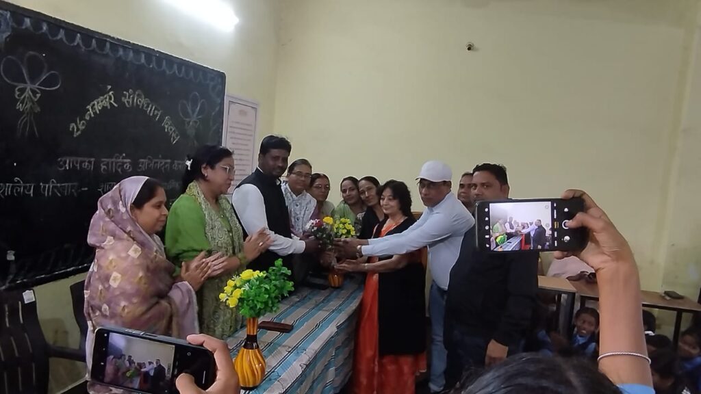 रायगढ़ -शासन के मंशानुरूप विभागीय निर्देशों के परिपालन में 26 नवम्बर को शासकीय हाईस्कूल चांदमारी रायगढ़ में शासकीय रविशंकर प्राथमिक शाला, माध्यमिक एवं हाईस्कूल चांदमारी तीनों शालाओं ने संयुक्त रूप से संविधान दिवस मुख्य अतिथि श्रीमती चैताली राय जिला महिला संरक्षण अधिकारी एवं प्रवक्ता श्री महेन्द्र सिंह यादव (एडव्होकेट), अध्यक्ष, शाला प्रबंधन समिति शासकीय रविशंकर प्राथमिक शाला रायगढ़ के आतिथ्य में, वार्ड पार्षद श्रीमती रंजना कमल पटेल, शाला विकास एवं प्रबंधन समिति के सदस्यगण श्रीमती रंजना राय ,श्री इतवार सिंह,श्री पूर्णानंद शर्मा,श्री अरुण तिवारी, श्रीमती सपना बर्मन, सामाजिक कार्यकर्ता श्रीमती पंकज लता यादव, आइरिस स्कूल संचालिका श्रीमती रिंकी पांडेय एवं अन्य सम्मानित सदस्यों की गरिमामयी उपस्थिति में मनाया गया।