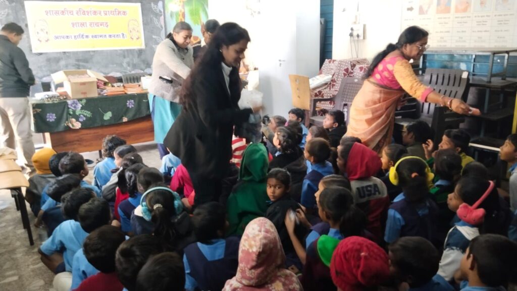 इसके पश्चात् श्री इतवार सिंह व सुश्री चित्ररेखा पोर्ते द्वारा उपस्थित विद्यार्थियों को न्यौता भोज अंतर्गत बिस्किट व चाकलेट वितरित किया गया, फलस्वरूप बच्चे आनंदित हुए।