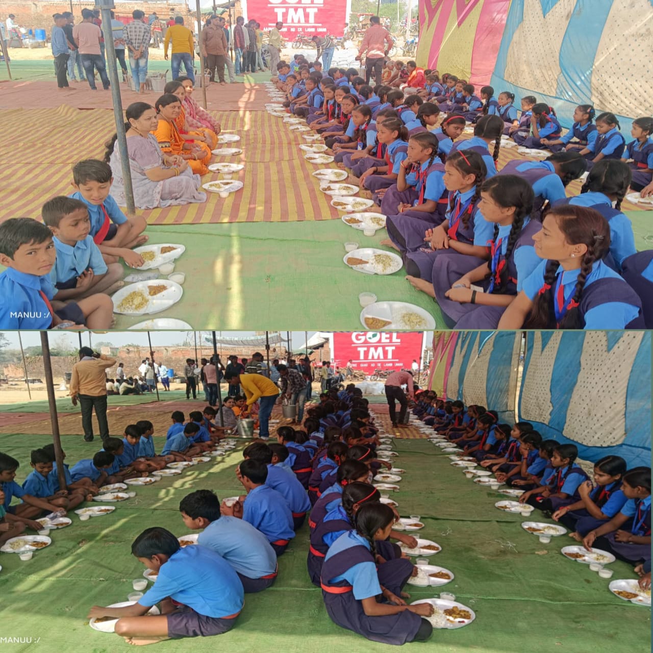 स्वादिष्ट भोजन ग्रहण कर बच्चे खुशी से झूम उठे,इस अवसर पर संस्था प्रमुख द्वय शिक्षक-शिक्षिक एवं बच्चे उपस्थित थे।