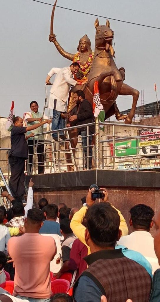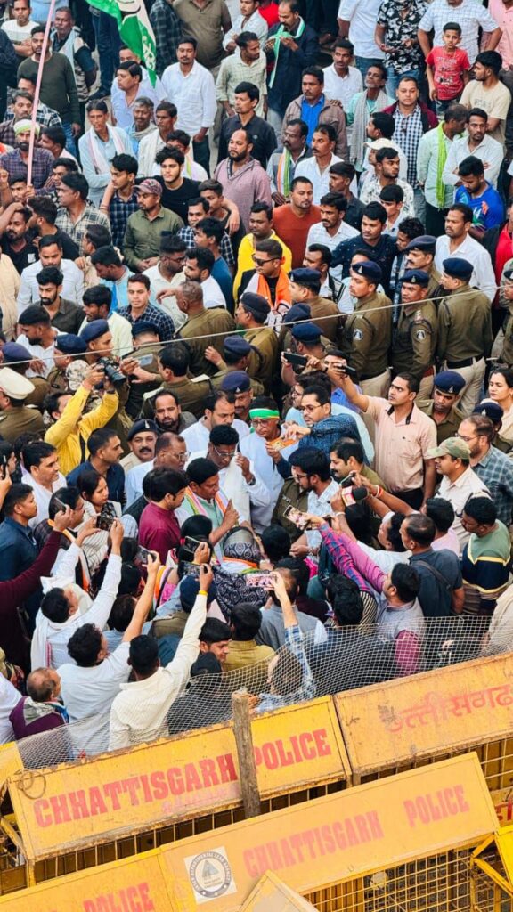 सारंगढ़ । जिले में विधायक पति व कांग्रेस नेता गनपत जांगड़े पर झूठी रिपोर्ट दर्ज होने तथा जनहित में 17 सूत्रीय मांगों को लेकर जिला कांग्रेस अध्यक्ष अरुण मालाकार के अगुवाई में जिले के सैकड़ो कांग्रेसी कार्यकर्ताओं ने कलेक्ट्रेट का घेराव किया, घेराव से पूर्व लक्ष्मीबाई परिसर में कांग्रेस के मंच को उमेश पटेल पूर्व मंत्री विधायक, श्रीमती उत्तरी गणपत जांगड़े विधायक , श्रीमती कविता प्राण लहरे विधायक, श्रीमती चातुरी नंद विधायक, रामकुमार यादव विधायक, प्रकाश नायक पूर्व विधायक रायगढ़ और जिले के वरिष्ठ कांग्रेसियों ने अपना संबोधन दिया । सभी ने कहा कि – शासन प्रशासन एक पक्षीय रवैय्या अपना रही है जिसका हम कड़ा विरोध दर्ज करते हैं । आमसभा के बाद सैकड़ो कांग्रेसियों की रैली सीधे जिला कलेक्ट्रेट के लिए रवाना हुई जहां पुलिस प्रशासन के बैरिकेट्स को तोड़ते हुए कांग्रेस कार्यकर्ता ने जमकर नारेबाजी की और अंततः कांग्रेस के वरिष्ठ नेता के समझाइस पर दूसरे बैरिकेट्स में जिला प्रशासन के अधिकारियों को विधायक दल और जिलाध्यक्ष कांग्रेस ने ज्ञापन सौंपकर कार्यकर्ता की बात रखी । बैरिकेट्स को तोड़ने में विकास मालाकार, शुभम वाजपेई, विनोद, चारू नावेद, विक्की, अभिषेक, जितेंद्र, राजेंद्र, अप्पू, बंटी, सत्यम और युवाओं की टीम ने जमकर मशक्कत की।