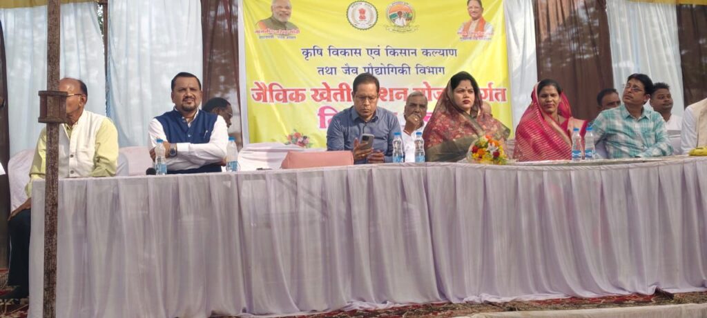 सारंगढ बिलाईगढ जैविक खेती मिशन योजनांतर्गत एक दिवसीय जिला स्तरीय जैविक किसान मेला जिला सारंगढ बिलाईगढ का भब्य आयोजन बिलाईगढ के दशहरा मैंदान में कलेक्टर धर्मेश साहू के दिशा निर्देश में किया गया जिसमें मुख्य अतिथि के रुप में बिलाईगढ विधायक कविता प्राण लहरे शामिल हुयी। जिले के परियोजना निर्देशक हरिशंकर चौहान ए्ंव उप संचालक कृषि आशुतोष श्रीवास्तव के मार्गदर्शन में मेले का सफल आयोजन किया गया। जिले के किसान भारी संख्या में शामिल हुये।कलेक्टर ने सभी किसानों को अपनी खेती के तकनिकी में वैज्ञानिक सुझाव को अपनाते हुये कम लागत में अधिक आमदनी लेने की बात कही।विधायक कविता प्राण लहरे ने किसानों को विष रहित खेती कर स्वास्थ्य एवं पर्यावरण को बचाते हुये ऊपज लेने की बात कही।कृषि विज्ञान केन्द्र भाटापारा से पहुंचे कीट वैज्ञानिक चैलेश पटेल ने फसलों में जैविक कीट प्रबंधन के बारे में विस्तार से बतलाया,कृषि यंत्रीकरण के इंजिनियर पी डी वर्मा ने आधुनिक खेती में कम खर्चे में कृषि यंत्रों की विभिन्न तकनिकी से अवगत कराते हुये हर परिस्थति के अनुरुप कृषि यंत्र उपलब्ध होने की जानकारी देते हुये धान गेहू दलहन तिलहन साग सब्जी की बोनी एवं निंदाई गुडाई गहाई आदि के यंत्रों का उपयोग करने का सुझाव दिये।किसानों द्वारा खेती किसानी संबंधी समस्या रखी गयी जिसका निराकरण वैज्ञानिकों द्वारा मौके पर किया गया।प्रगतिशील कृषक राधेलाल मडकडी,मुन्ना लाल पवनी,वरूण साहू पुरगांव,रतन यादव रोहिना,लालमोहन परषा पाली,गिरजाशंकर साहू रोहिना,ननकीदाऊ रेडा,कशिश जांगडे मिट्टी परीक्षण केंद्र पिपरडुला के कुशल पर संचालन को विधायक एवं कलेक्टर के हाथों शाल श्रीफल एवं प्रशस्ति पत्र से सम्मानित किया गया। ग्राम खैरा कटगी के कृषक धारेलाल दिब्याकर ने लगभग 150 किस्मों के जैविक धान की प्रदर्शनी रखी थी जिसे काफी सराहा गया। पशुपालन विभाग द्वारा पशु प्रदर्शनी ,पशु उपचार एवं टीकाकरण आदि किया गया मौके पर कृषि सभापति सोहन जासवानी,सदस्य हार बाई कुर्रे,जगजीवन भारद्वाज,सेवा निवृत कृषि आधिकारी राजमहंत पी के घृतलहरे,बी एल साहू,बी आर यादव ,डी आर केशरवानी ने अपनी उपस्थिति देते हुये अपने जीवन काल के कृषि अनुभवों को साझा किया, पशुपालन विभाग से डा रविन्द्र कुर्रे, डा सीमा,प्र.वरिष्ठ कृषि विकास अधिकारी के के साहू,प्रकाश थवाईत,शेखरसुमन सिंह रात्रे, आनंद राजपूत, बीपीएस कंवर, देवेश कुमार ,दीनानाथ साहू, कवल सारथी, रामगुलाल साहू, शास्त्रज्ञ कुमार , विजय आनंद कुर्रे , विजय कंवर,कशिश जांगडे (VLSTL ) मिट्टी परीक्षण केन्द्र पिपरडुला के आदि सटाफ सहित अंचल के कृषक जनप्रतिनिधि व सकरी महिलाएं भारी संख्या में शामिल रहे , मंच का संचालन डी आर केशरवानी ने किया