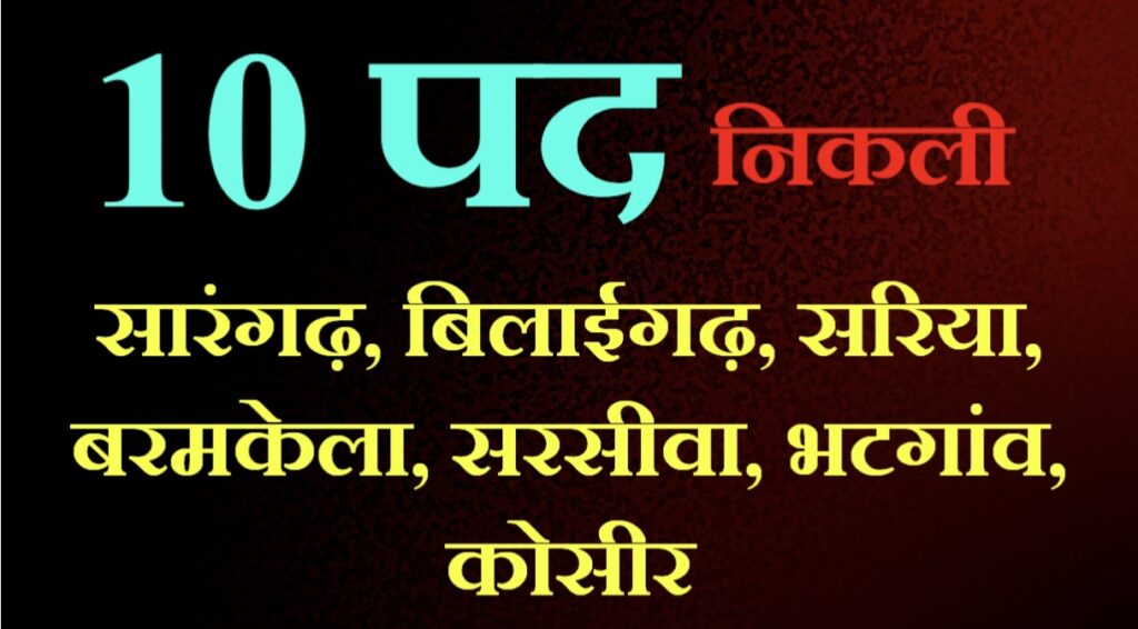 सारंगढ़ बिलाईगढ़, 15 दिसंबर 2024/ छत्तीसगढ़ नागरिक सेवा (इलेक्ट्रॉनिक अधिशासन) नियम 2003 के अनुसार लोक सेवा गारंटी अधिनियम के तहत इन नियमों के अधीन चॉइस एजेंट के रूप में निम्नानुसार नियुक्ति हेतु आवेदन आमंत्रित किये जाते है। कार्यालय जहां आवेदन आमंत्रित किये गए हैं उनमें जिला कार्यालय सारंगढ़ बिलाईगढ़, तहसील भटगांव, उप-तहसील कोसीर, नगर पालिका परिषद् सारंगढ़ सहित नगर पंचायत बरमकेला, सरिया, सरसीवां, बिलाईगढ़, भटगांव के 10 कार्यालय हेतु निर्धारित प्रारूप में आवेदन पत्र डाक के माध्यम से कार्यालय कलेक्टर, जिला- सारंगढ़-बिलाईगढ (छ०ग०), पिन कोड 496445 में 31 दिसंबर 2024 तक कार्यालयीन समय में जमा कर सकते हैं। इस पद पर चयन हेतु विस्तृत विज्ञापन, पदों की संख्या, निर्धारित शैक्षणिक योग्यता एवं अन्य जानकारी तथा आवेदन पत्र का प्रारूप जिले के वेबसाईट https://sarangarh-bilaigarh.cg.gov.in/ पर अवलोकन किया जा सकता है।