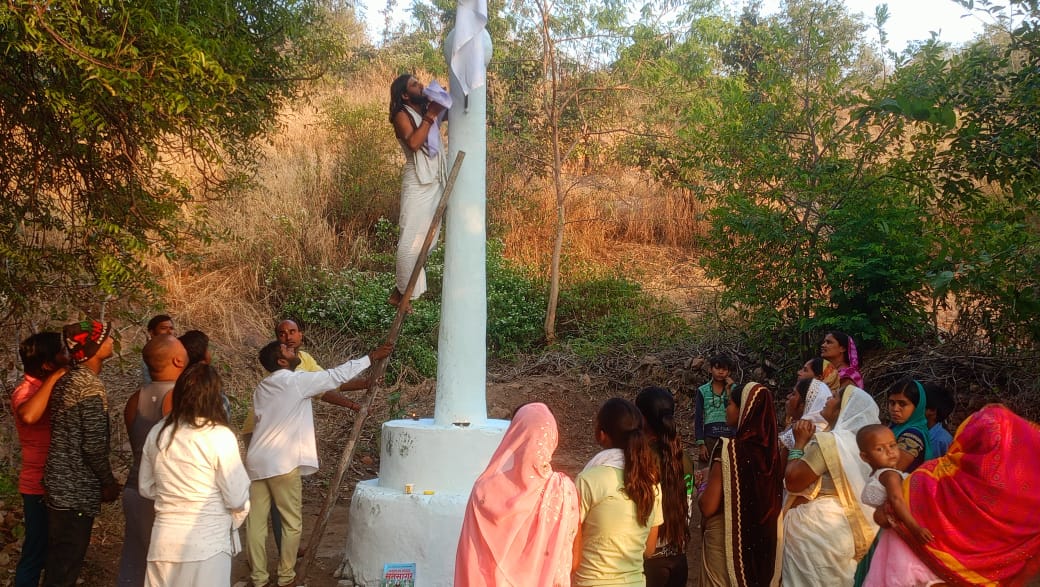 ध्वजा रोहण पश्चात प्रसाद के रूप में खीर,पुड़ी,केला,सेव का वितरण किया गया l