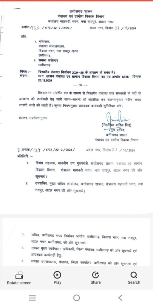 KN@Yogesh December 27, 2024 खबर शेयर करें सारंगढ़ – लगातार त्रिस्तरीय पंचायत चुनाव आरक्षण टलता जा रहा है देखे आगे कब होगा Post Views: 1,953 ख़बर निरीक्षण खबर निरीक्षण यूट्यूब न्यूज चैनल की शुरुआत एक नए सवेरा और नए विजन के साथ शुरू किया गया है जिसमे हमारी और आपकी आसपास हो रही घटना, भ्रष्टचार ,शोषण,अत्याचार ,जनसरोकर, जनहित मुद्दे,समाज तक उनकी हक अधिकार की बात,सरकार के विकास नीति से लेकर दबे कुचले वंचित और अंतिम व्यक्ति तक की आवाज बनने के उद्देश्य के साथ शुरू किया गया है न ही हम कोई बड़े पत्रकार है और ना ही बड़ी चैनल लेकिन इसी आशा और विश्वास के साथ शुरु कर रहे की हमेशा देश हित, समाज हित, और जनहित की खबरे आपको दिखाते रहे और लोकतंत्र के चौथा स्तंभ की भूमिका जिम्मेदारी और जवाबदारी के साथ निभाते रहे आप सबका का सदा सहयोग हमारे लिए एक आशीर्वाद और प्रेरणा पथ रहेगा जिससे हमें और तीव्र ऊर्जा के साथ काम करने के लिए प्रेरित करता रहेगा ( खबर निरीक्षण की खबरों को देखने के लिए चैनल को subscribe जरूर करे) ऑफिस नंबर 7987965487,6261083351 खबर निरीक्षण पोर्टल की खबर पढ़ने के लिए लिंक पर जाएं https://khabarnirikshan.in YouTube Video UCNSioo_11gmS_bgccfitZXw_aMajN925YYY Govt Hospital मे जाँच के दौरान तहसीलदार से तीखी नोकझोंक || पूरा Video आया सामने,, अचानक बढ़ गई बात #shortvideo प्यासे ग्रामीणों की बुझेगी प्यास,, भालू पानी गावं मे पानी ही पानी सरकारी अस्पताल मे ब"वाल | तहसीलदार से नोकझोंक,,पानी फ्रिजर मे 2 झिपकली | मरीज परिजन स्टाप पीते रहे.. ख!!.तरे मे sarangarh || उजड़ेगा कई गावं,, त!!बाह होगा खेत 1800 एकड़ का विनाश!!कारी Project #shortvideo 5 वा अफीम मामला || सब्जी की आड़ मे अफीम की खेती,,, नया मामला आया सामने #shortvideo हाय,,कुआँ के पानी से मिला झूटकारा || अब हम भी पियेंगे साफ पानी खबर का असर : वर्षो की मजबूरिया दूर,,अब नहीं पीना पड़ेगा || 300 ग्रामीणों को कुआँ का गंदा बदबूदार पानी #shortvideo मार्सल सांगा से 3 KG अफीम भी बरामद तमनार आमाघाट अफीम : 60326 नग 2877 किलो वजन || 3KG अफीम बरामद || 2 करोड़ 5 लाख 10 हजार की जहरीला खेती Post navigation Previous छत्तीसगढ़ मे 1 जनवरी तक शासकीय शोक दिवस घोषितNext पूर्व विधायक के रिश्तेदार गांजा कांड मे फिर हुआ बढ़ा खुलासा More Stories Blog सारंगढ़ बिलाईगढ़ ज़िला में हो रहे अवैध फ्लाई-एस डंपिंग, माफिया के ऊपर कार्यवाही के लिए कलेक्टर को भीम आर्मी द्वारा ज्ञापन सौंपा गया March 24, 2026 KN@Yogesh Blog अगर आपकी भी समस्या का समाधान नहीं हुआ तो चिंता मत करिये,,, लग रहा जन समस्या निवारण शिविर || जाये जरूर March 23, 2026 KN@Yogesh Blog सारँगढ जनसमस्या निवारण शिविर का आयोजन 27 मार्च को, एसडीएम ने जारी किए निर्देश March 23, 2026 KN@Yogesh