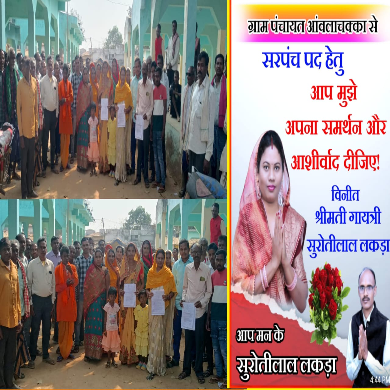 नामांकन के दौरान गायत्री सुरोतीलाल लकड़ा के समर्थकों ने उनके प्रति अपना समर्थन व्यक्त किया और समर्थकों ने दावा किया कि वे ग्राम पंचायत में विकास और जनकल्याणकारी योजनाओं को प्राथमिकता देंगी।