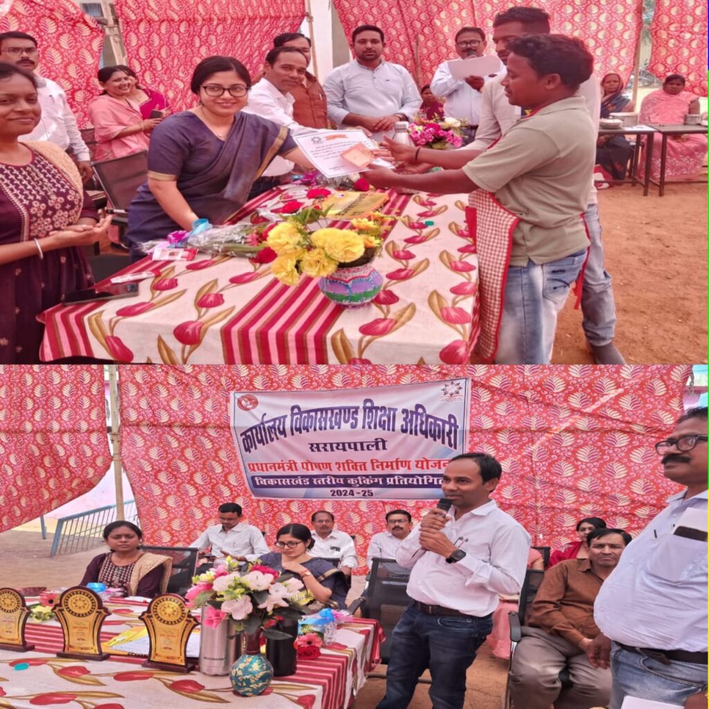कार्यक्रम के मुख्य अतिथि एसडीएम सरायपाली(आईएएस)सुश्री नम्रता चौबे ने कार्यक्रम का शुभारंभ किया एवं कार्यक्रम में उनके साथ एसडीओपी ललिता मेहेर,विकासखंड शिक्षा अधिकारी प्रकाश चंद्र मांझी एवं विकासखंड स्त्रोत समन्वयक(समग्र शिक्षा) सतीश स्वरूप पटेल उपस्थित थे। विकासखंड सरायपाली के 38 संकुलों से चयनित रसोइयों के बीच मीनू अनुसार नियत समय पर स्वादिष्ट एवं पौष्टिक भोजन बनाने के लिए आवश्यक सामग्री उपलब्ध कराई गई एवं इस प्रतियोगिता के मुख्य निर्णायक सी एल पुहूप प्राचार्य केजुवां,कैलाश चंद्र पटेल संकुल समन्वयक अमरकोट,देवानंद नायक संकुल समन्वयक केन्दुढा़र,संगीता पंडा शिक्षक मा.सा.गो.अं.मा.सरायपाली,निरुपमा देवता सहायक शिक्षक प्रा.शा.चिवराकुटा ने अपने दायित्वों का निर्वहन बखूबी से किया। प्रतियोगिता में प्रथम स्थान सिंघोड़ा(अ)नारायण मटारी चिवराकुटा,द्वितीय स्थान मंदिर स्कूल,तृतीय स्थान बालसी ने प्राप्त किया और