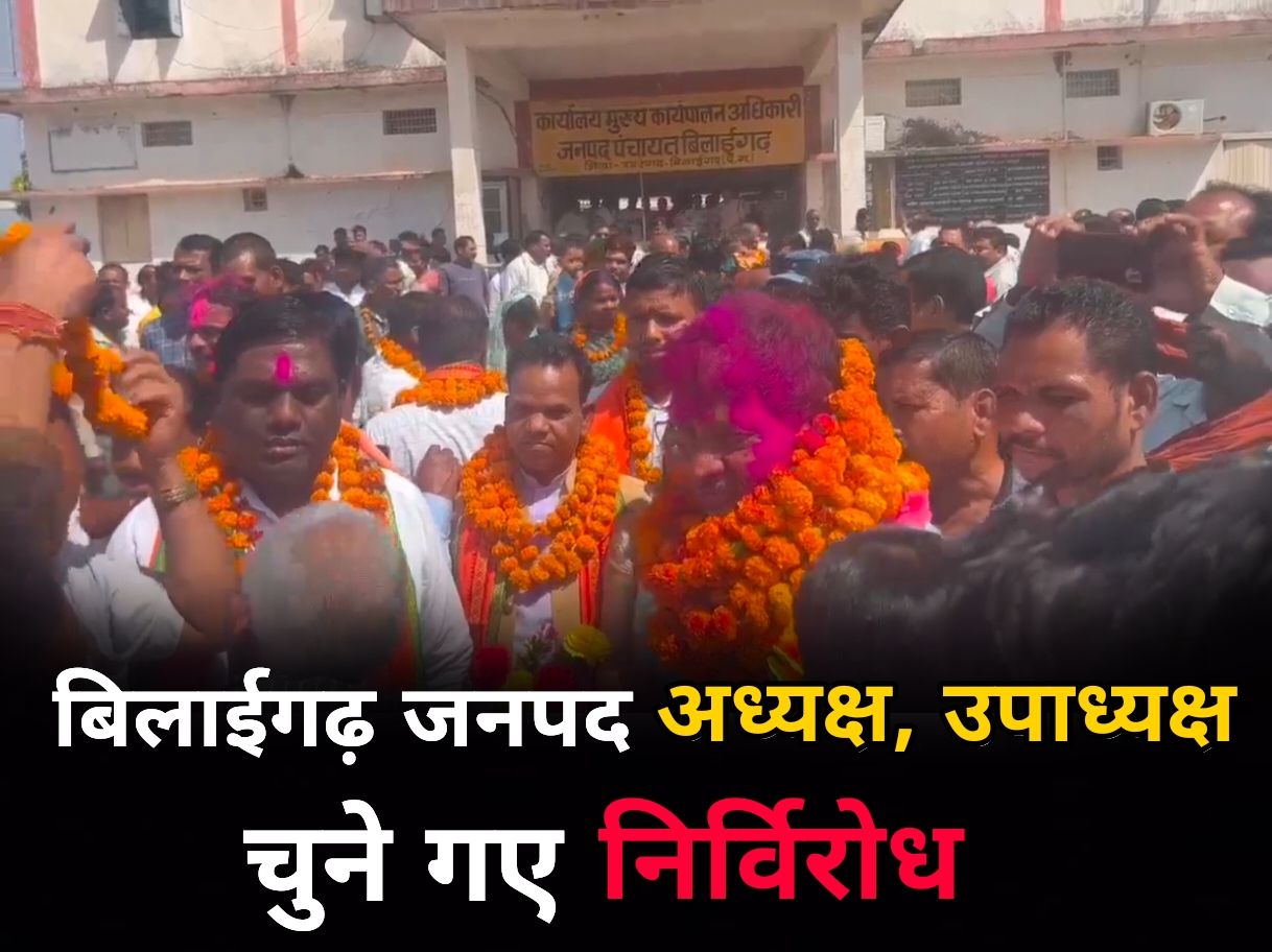 जनपद पंचायत बिलाईगढ़ के अध्यक्ष एवं उपाध्यक्ष का निर्वाचन हुआ संपन्न,,,, अध्यक्ष एवं उपाध्यक्ष निर्विरोध गए चुने,,,, अध्यक्ष जय शंकर साहू और उपाध्यक्ष बने कृष्णो बाई चंद्रा,,,, जनपद पंचायत बिलाईगढ़ में पहली बार हुआ निर्विरोध अध्यक्ष और उपाध्यक्ष का चुनाव,,,, कार्यकताओ ने फूलमाला से किया स्वागत,,,, बड़ी संख्या में जनपद पंचायत कार्यालय के बाहर समर्थक है मौजूद ।।।