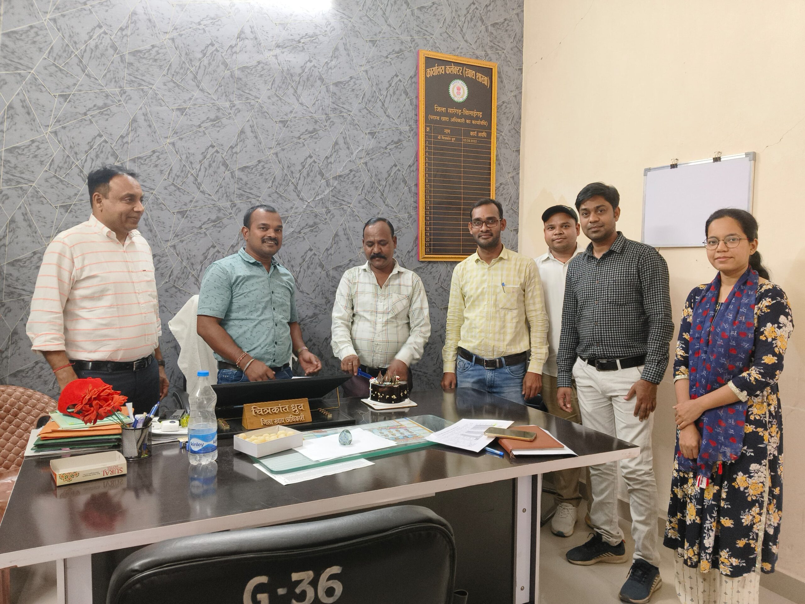 सारंगढ़ बिलाईगढ़ :- यूं तो शासकीय कार्यलींन में व्यवस्था होने के बाद भी अधिकारी किसी कर्मचारी का ख्याल रखते कार्यालय में यदि जन्मदिन मनाये तो जरा सोचियेगा उस कर्मचारि के लिए वो दिन कितनी ख़ुशी का दिन होगा आप को बता दे कि एक कर्मचारी हमेसा अपने कार्य को लेकर हर कार्यों में आगे रहकर अपना सत प्रतिशत सेवा देते रहते है जिसमे कई जिमेदारीयो को बखूबी निभाते रहे है जिसके चलते उनको अपना जन्मदिन याद नही रह पाता अब ऐसे में कोई उनका अधिकरी उनको विष करे दरशल सारंगढ बिलाईगढ़ के खाद्य अधिकारी जिन्हों ने अपने स्टाप का ख्याल रखते अपने विभाग के बड़े बाबू छबिलाल चौहान का जन्मदिन पूरे स्टाप के साथ केक काटकर मनाया इस दौरान जिले के F.O. एवं D.M.O. फूड इंस्पेक्टर ऑपरेटर सब ने शुभकामनाएं देते हुए बधाई दिए सब ने अपनी अपनी खुशी भी जाहिर कीये जिन्हें देख बड़े बाबू जी ने भी सभी को धन्यवाद ज्ञापित किये