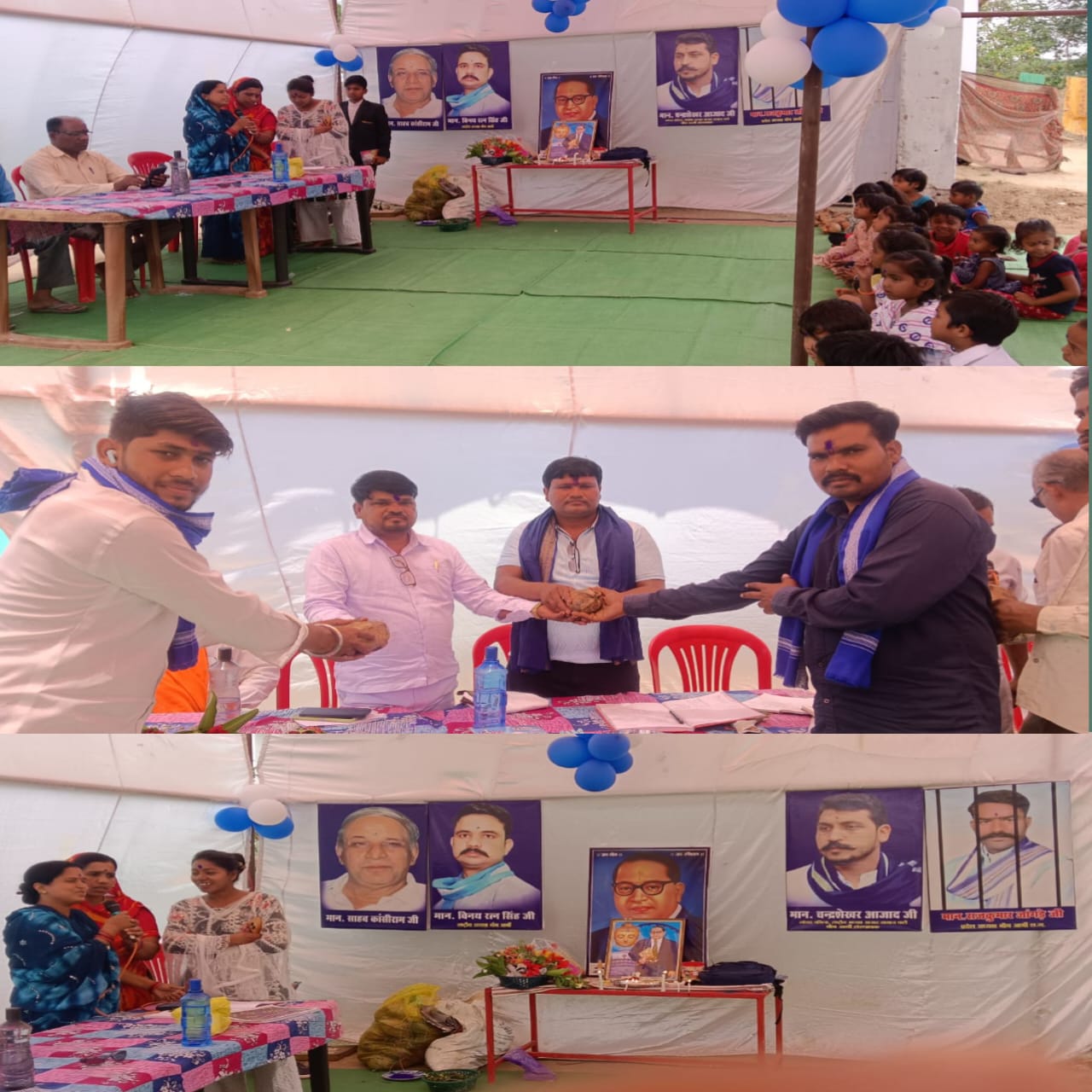 आए हुए अतिथियों का स्वागत नारियल,पुष्पगुच्छ एवं नीला गमछा भेंट दे कर सम्मानित किया गया एवं गांव से आए हुए बुजुर्गों का सम्मान श्रीफल दे कर सम्मान किया गया और साथ ही साथ पढ़ने-लिखने वाले बच्चों को पेन,कॉपी,डायरी एवं महापुरुषों की बुक को साथ में देकर उन्हें पढ़ने-लिखने के लिए प्रेरित किया गया।