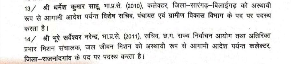 सारंगढ़ – सारंगढ़ बिलाईगढ़ जिले के कलेक्टर धर्मेश साहू बदले गए नए कलेक्टर होंगे अब डॉ संजय कन्नौजे होंगे नए कलेक्टर साथ ही प्रदेश के लगभग