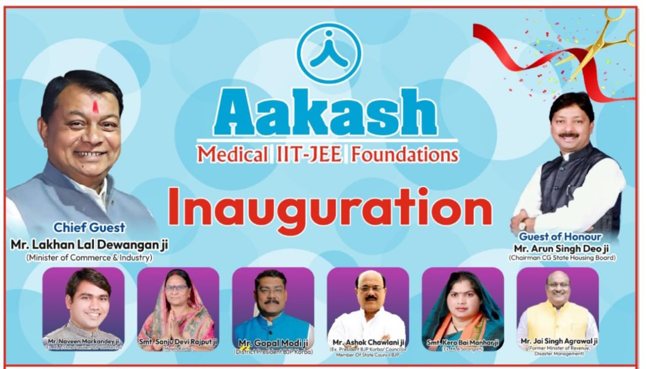 आकाश इंस्टिट्यूट मंत्री सहित कई नेताओं के हाथों होगा उद्धघाटन,