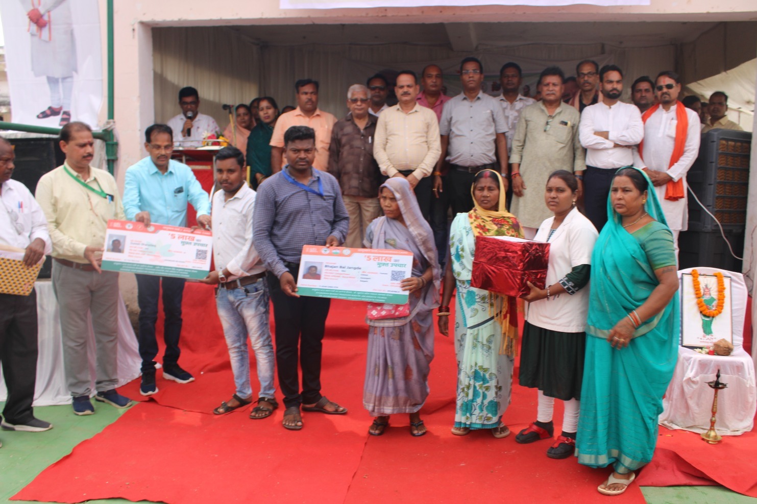 सारंगढ़ बिलाईगढ़, 29 मई 2025/ सारंगढ़ के जवाहिर भवन के पास और ग्राम छिंद में आयोजित समाधान शिविर के स्टालों का निरीक्षण जनप्रतिनिधियों और कलेक्टर डॉ संजय कन्नौजे के द्वारा किया गया। कलेक्टर ने इस दौरान नन्हे बच्चों को अन्न प्रासन्न और गर्भवती महिलाओं को उपहार भेंट किए। कलेक्टर ने जिले के अधिकारियों को विभागीय आवेदन, कार्य, हितग्राहियों को सामग्री वितरण किए। अतिथियों सहित कलेक्टर ने सभी हितग्राहियों को निक्षय मित्र किट, किसानों को कीटनाशक किट, भूजल परीक्षण किट आदि का वितरण किया। मुख्यमंत्री विष्णु देव साय के सुशासन तिहार में समाधान शिविर से नागरिकों की उम्मीदें बंधी है। अतिथियों में जिला पंचायत अध्यक्ष संजय भूषण पांडेय, सत्ताधारी दल के नेतागण ज्योति पटेल, जगन्नाथ केशरवानी, दुर्गाप्रसाद ठाकुर, अजय गोपाल, मनोज जायसवाल, हरिनाथ खुंटे, सतीश शर्मा, प्रहलाद आदित्य सहित जिले के अधिकारी कर्मचारी और बड़ी संख्या में नागरिक शामिल थे। कलेक्टर डॉ संजय कन्नौजे ने इस अवसर पर नागरिकों को नशा से दूर रहने के लिए नशामुक्ति का शपथ दिलाया। इसके साथ साथ कलेक्टर ने जल संरक्षण की भी शपथ दिलाया।