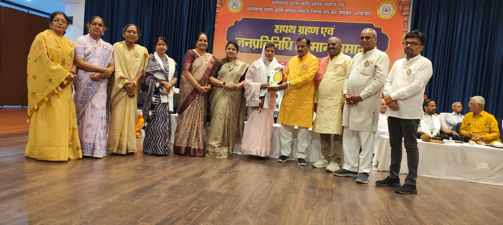 इस अवसर पर मुख्य रूप से उपस्थित अतिथि बिज निगम अध्यक्ष चंद्रहास चंद्राकर,दूर्ग ग्रामीण विधायक ललित चंद्राकर,प्रदेश अध्यक्ष सुनील चंद्राकर,कुर्मी क्षत्रिय समाज महिला राष्ट्रीय अध्यक्ष लता रीषिकेश चंद्राकर,प्रदेश महिला अध्यक्ष तारा चंद्राकर,प्रदेश उपाध्यक्ष सविता चंद्राकर वा समाजिक प्रमुख जन मंच में आशिन रहे एवं