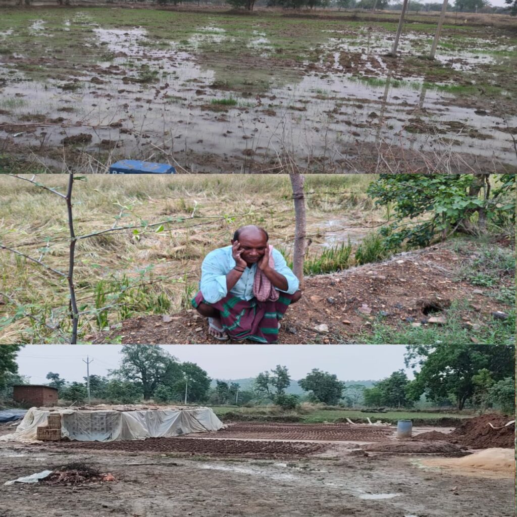 ग्राम कांशीपाली के किसान घसिया सिदार के खेत में पानी भर जाने के कारण धान की फसल की कटाई नहीं कर पाया है एवं किसानों ने शासन-प्रशासन से धान फसल को हुई नुकसान की मुआवजा राशि दिए जाने की मांग की है।