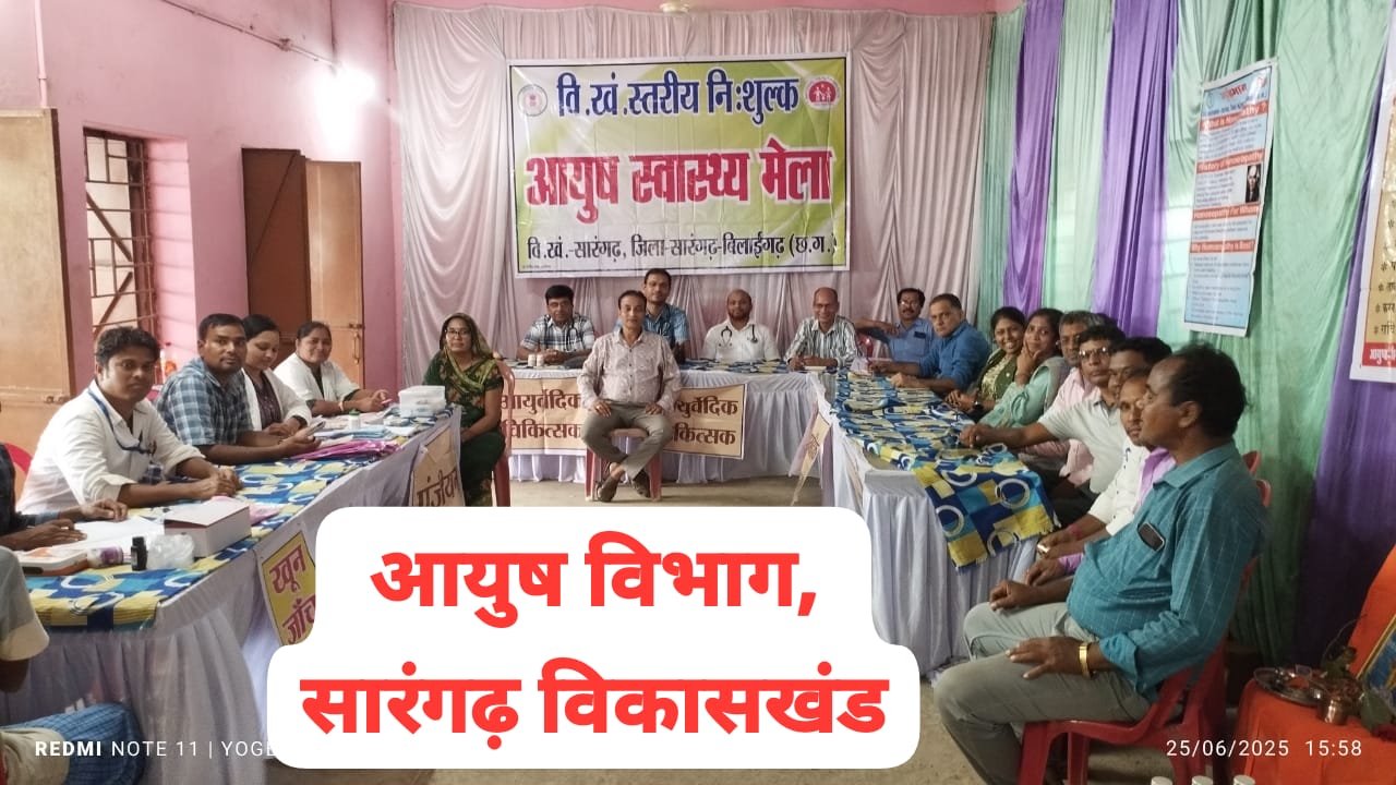 सारंगढ़ : आयुक्त आयुष रायपुर के निर्देशानुसार एवं डॉ संजय कन्नौजे कलेक्टर सारंगढ़ बिलाई गढ़ के मार्गदर्शन में तथा डॉ चंद्रशेखर गोरहा जिला आयुष अधिकारी रायगढ़ के संरक्षण में निःशुल्क विकास खण्ड स्तरीय आयुष स्वास्थ्य मेला का आयोजन दिनांक 25/6/2025 को ग्राम कोतरी में मंगल भवन शासकीय प्राथमिक शाला परिसर कोतरी में श्रीमती मथुरा कन्हैया गिरी गोस्वामी सरपंच ग्राम पंचायत कोतरी द्वारा भगवान धन्वंतरि की तैल चित्र पर पूजा अर्चना कर किया गया जिसमें खण्ड स्तरीय समस्त आयुर्वेद एवं होम्योपैथी चिकित्सकों द्वारा निःशुल्क जाँच कर आवश्यक दवाइयां वितरण की गई साथ ही दैनिक आहार बिहार की जानकारी दिया गया तथा सामान्य रोगों के साथ साथ बात रोग श्वास रोग कफ अम्लपित्त त्वचा रोग स्त्री रोग शिशु एवं बाल रोग मूत्र विकार अर्श भगंदर वृद्धावस्था जन्य रोग शारीरिक एवं मानसिक दौर्बल्यता एवं अन्य रोगों के परामर्श व उपचार आदि की निःशुल्क सुविधा प्रदान की गई मौसमी बीमारियों व संक्रमण रोगों की रोकथाम एवं रोग प्रतिरोधक उपाय की जानकारी प्रदान जिसमें कुल 612 मरीजों का निःशुल्क जांच व उपचार किया गया