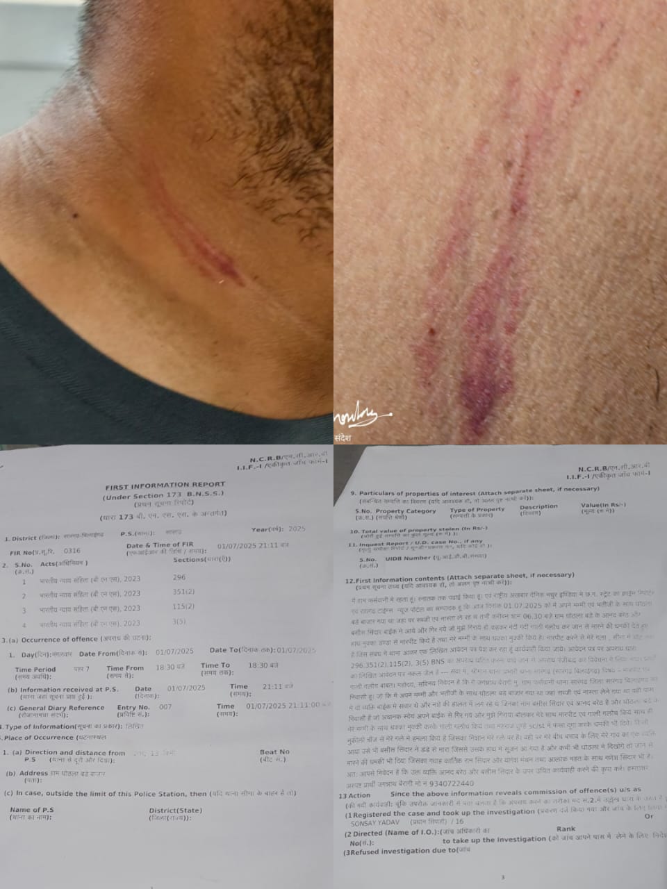 आपलोगों के शिकायत पर अपराध पंजीबद्ध हों चुका है अपराधी जल्द ही कानून के गिरफ्त में होंगे, उचित जांच कर अवश्य कार्रवाई होगी।