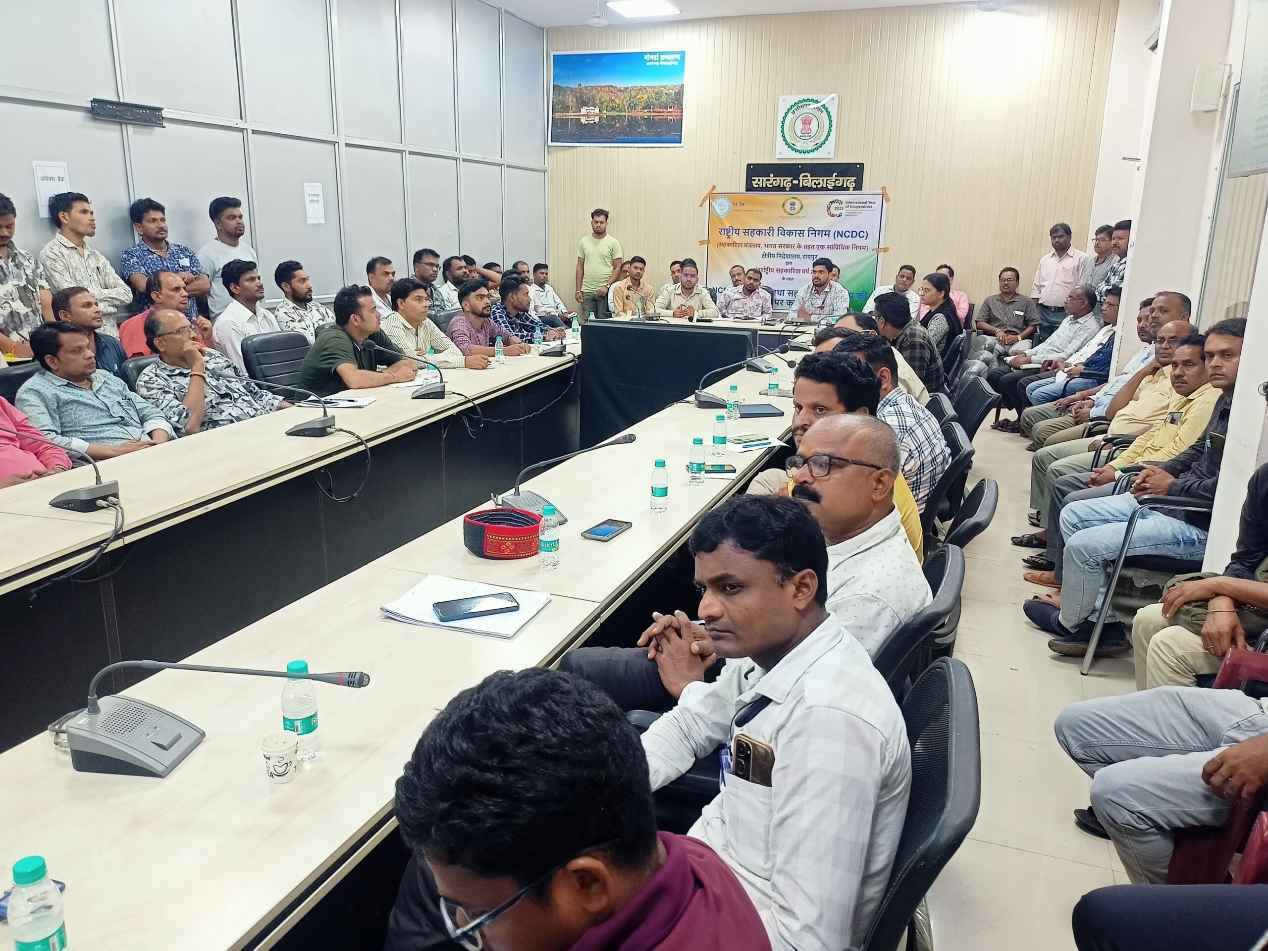 सारंगढ़ बिलाईगढ़, 5 जुलाई 2025/ राष्ट्रीय सहकारी विकास निगम (एनसीडीसी) रायपुर के अधिकारियों द्वारा कलेक्ट्रेट सभाकक्ष में सारंगढ़ बिलाईगढ़ जिले के सहकारी समितियों के प्रबंधकों और ऑपरेटरों के साथ प्रशिक्षण बैठक किया गया।अधिकारियों ने एनसीडीसी की इस कार्यशाला का लाभ लेने हेतु प्रेरित किया। इसके साथ ही योजनाओं के अंतर्गत युवा सहकार, कृषि संरचना निधि योजना (एआइएफ), ,किसान उत्पाद संगठन (एफपीओ), एग्रीकल्चर मार्केटिंग इंफ्रास्ट्रक्चर (एएमआई), प्रधानमंत्री सूक्ष्म खाद्य प्रसंस्करण उद्यम योजना (पीएमएफएमई), पशुपालन अवसंरचना विकास निधि (एएचआईडीएफ), राष्ट्रीय पशुधन मिशन (एनएलएम) के बारे मे जानकारी दी गई और उपयुक्त प्रस्ताव का सृजन करने हेतु प्रेरित किया। कार्यक्रम का शुभारंभ सहकारिता विभाग के सहायक आयुक्त व्यासनारायण साहू के द्वारा किया गया।