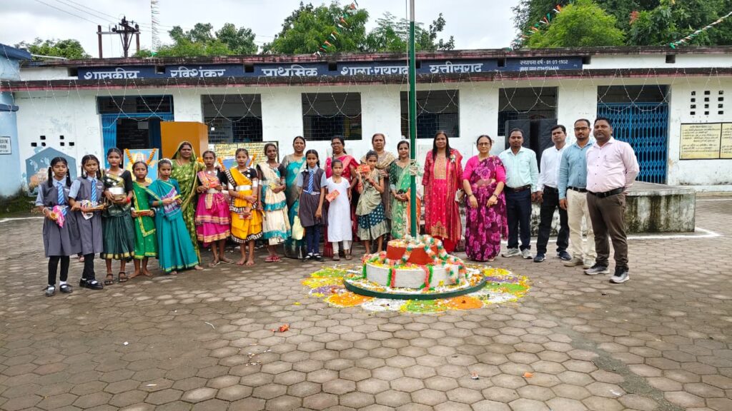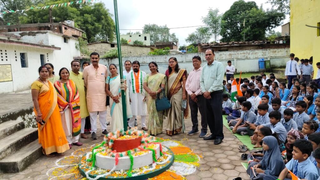 शासकीय उच्चतर माध्यमिक विद्यालय चांदमारी रायगढ़ में 15 अगस्त 2025 को 79 वां स्वतंत्रता दिवस शाला प्रबंधन एवं विकास समिति की अध्यक्ष मुख्य अतिथि शोभा शर्मा के द्वारा भारत मां,छ.ग.महतारी के समक्ष दीप प्रज्जवलित कर, माल्यार्पण कर,अमर शहीदों के समक्ष श्रद्धा सुमन अर्पित कर,ध्वजारोहण अल्पसंख्यक प्रकोष्ठ के अध्यक्ष एवं छत्तीसगढ़ शासन हज कमेटी सदस्य रायपुर गुलाम रहमान, वार्ड पार्षद अमित शर्मा, पूर्व पार्षद श्रवण सिदार,मेहरूननिशा, पंकजलता यादव, इतवार सिंह, राजकुमारी नाग,समस्त सम्मानित एस एम डी सी सदस्यगण, कल्पना यादव , श्याम लाल सारथी,अनिल अग्रवाल,विनय शुक्ला एवं उनकी टीम, पालकगण , विद्यालय परिवार की उपस्थिति में किया गया। राष्ट्र गान कर,ध्वज को सलामी देकर, गगनभेदी नारे लगाए गए।