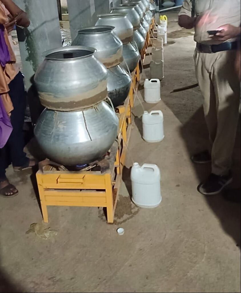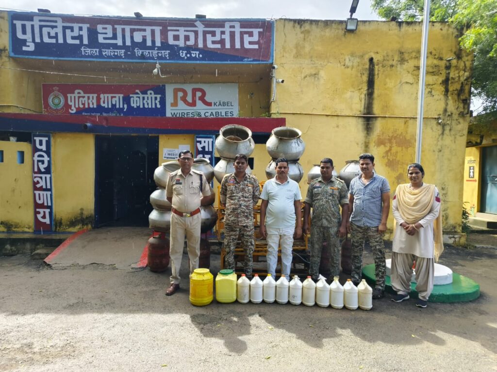 मुखबिरी सुचना से ग्राम सिंघनपुर में भारी मात्रा में शराब बनाया जा रहा है सुचना मिलते ही कोसीर पुलिस की टीम बनाकर गांव पहुंचकर छापामार कार्यवाही किया गया वहीं पुलिस ने बंसी लाल यादव के घर यहां छापामारा है जहां आरोपी के घर से आंगन में भारी मात्रा में शराब बनाया जा रहा था जहां 10 सफेद रंग की जेरीकन में 5 /5 लीटर शराब भरा हुआ था और दो पीला रंग की जेरीकन में 15/15 लीटर शराब भरा हुआ था कुल 80 लीटर कच्ची महुआ शराब जप्त किया गया आपको बता दे साथ पुलिस ने भारी मात्रा में शराब बनाने वाली सामग्री भी जप्त किया गया है जिसमें 4 नग गैस चूल्हा डबल बर्नर वाला,4 गैस सिलेंडर,16 नग तबेला, भी जप्त किया गया है जप्त के आधार पर अंदाजा लगाया जा सकता है कि शराब तस्कर कितनी मात्रा में बनाता था जिसकी मजबूत तंत्र से कोसीर पुलिस ने सफलता पाई है पुलिस ने गवाहों के समक्ष जप्त कर आरोपी को गिरफ्तार किया गया इस पूरे कार्यवाही में थाना प्रभारी सुनीता नाग बंजारे, सहायक उपनिरीक्षक टेसराम जांगडे, प्रधान आरक्षक बिरेंद्र सिंह ठाकुर, महिला प्रधान आरक्षक अनजना मिंज, आरक्षक प्रदीप रात्रे, धनंसाय कुर्रे, गिरजाशंकर देवागन