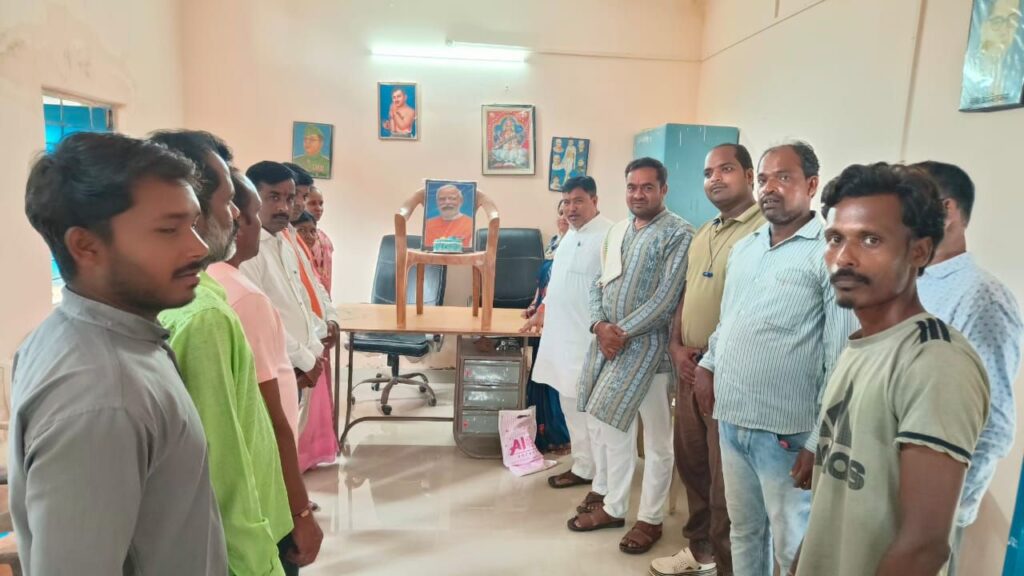 गोबरसिंहा में केक काटकर मनाया गया मोदी का जन्मदिन