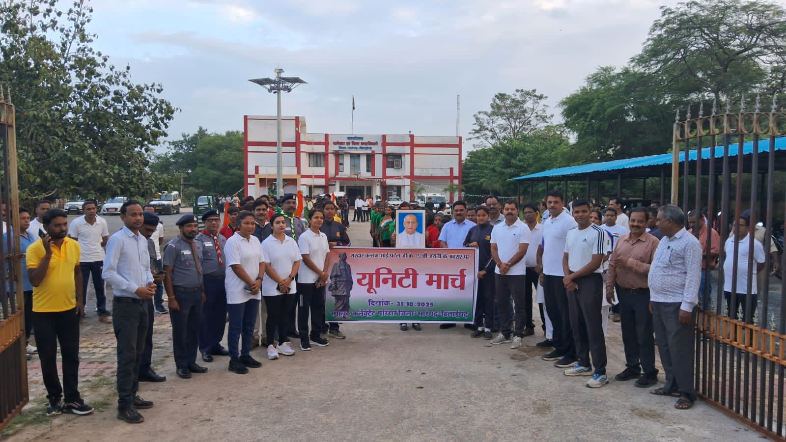 सारँगढ़ – आज दिनांक 31 अक्टूबर 2025 को पुलिस अधीक्षक महोदय श्री आंजनेय वार्ष्णेय के मार्गदर्शन में लौह पुरुष सरदार वल्लभभाई पटेल की 150 वीं जयंती पर ‘राष्ट्रीय एकता दौड़’ (रन फॉर यूनिटी) का आयोजन जिला मुख्यालय सारंगढ़-बिलाईगढ़ में किया गया। कलेक्ट्रेट परिसर से गढ़ चौक होते हुए खेलभांठा मैदान पर दौड़ की समाप्त हुई। दौड़ में विभिन्न आयु वर्ग सहित युवा, अधिकारी-कर्मचारी व नगरवासियों ने बड़े उत्साह के साथ हिस्सा लिया।