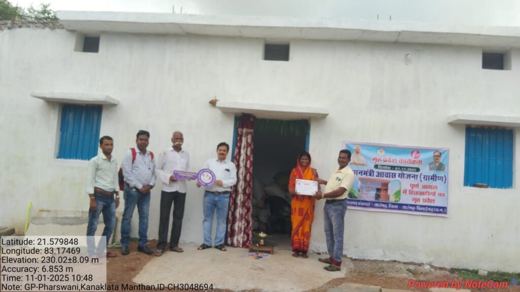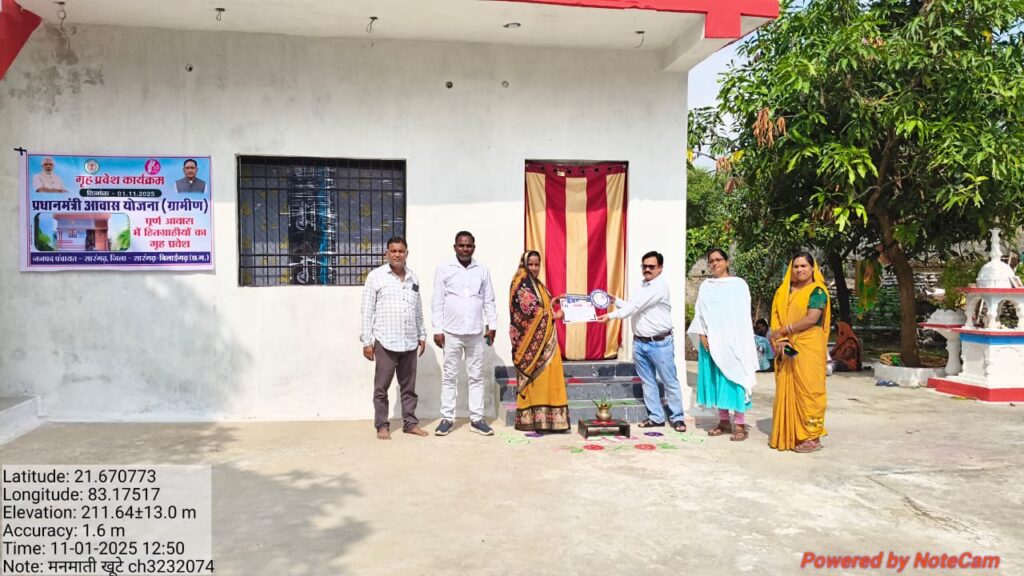 सारंगढ़ – रजत महोत्सव और 1 नवंबर छत्तीसगढ़ स्थापना दिवस के ऐतिहासिक अवसर पर प्रधानमंत्री आवास योजना (ग्रामीण/शहरी) के तहत हजारों हितग्राहियों को अपने सपनों का घर मिलने की खुशी मिली। गृह प्रवेश कराकर सरकार ने ‘सबके लिए आवास’ के संकल्प को और सशक्त किया।