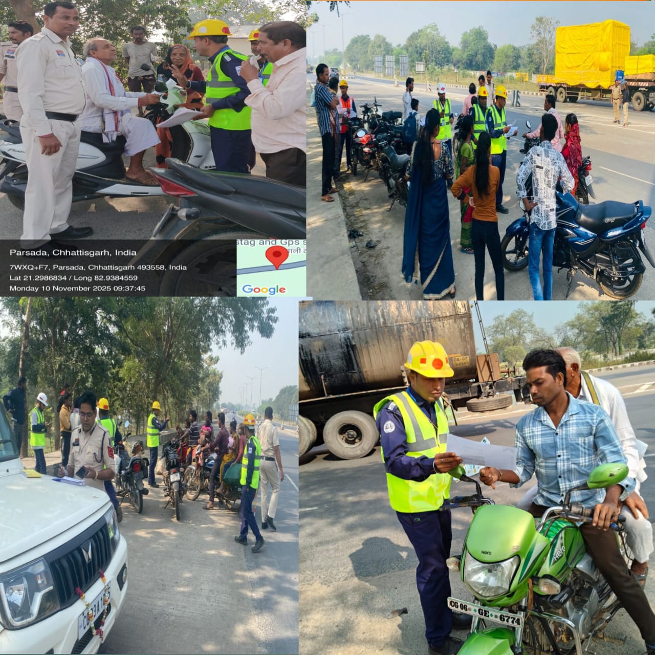 राष्ट्रीय राजमार्ग 53 पर हादसों को रोकने और जनता को जागरूक करने के लिए पुलिस प्रशासन और BSCPL Aurang Tollway Private Limited (टोल प्लाजा टीम) ने संयुक्त रूप से दिनांक 10.11.2025 को एक विशेष अभियान चलाया।