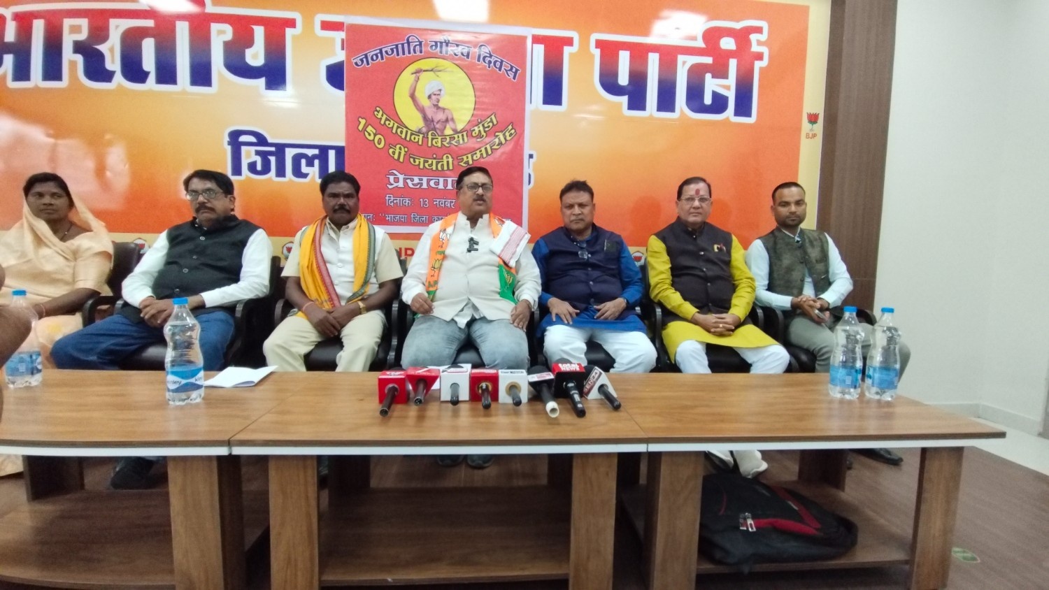 भाजपा अजजा मोर्चा राष्ट्रीय कार्यकारिणी सदस्य श्रीकांत सोमवार ने बिरसा मुंडा के जयंती पर प्रेस वार्ता साथ मे भाजपा जिलाध्यक्ष ज्योति पटेल,कमल सिदार, भुवन लाल मिश्रा, दुर्गा प्रताप ठाकुर, हरिनाथ खूंटे,श्रीमती शिव कुमारी सरधान चौहान मौजूद रहे