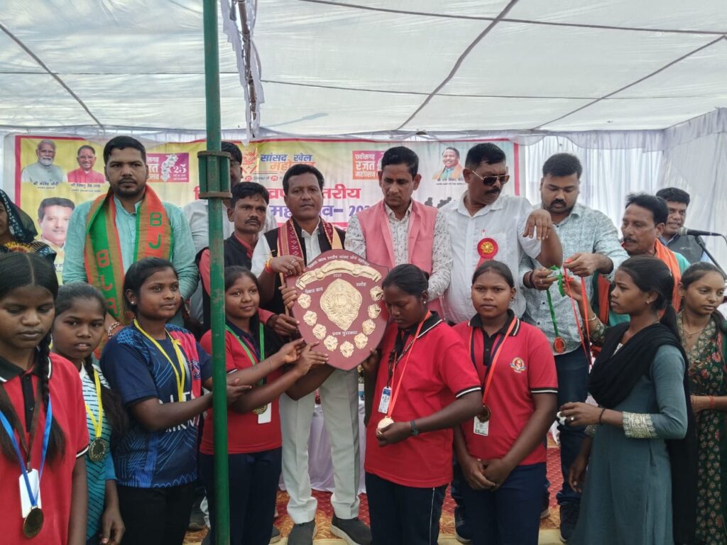 घरघोड़ा : विकासखंड स्तरीय सांसद खेल प्रतियोगिता विकासखंड के घरघोड़ी ग्राम के खेल मैदान मे परम्परागत एवं आधुनिक खेलों के समन्वयता से प्रारम्भ हुआ |जिसमें संकुल स्तर से विजेता प्रतिभागियों ने विकासखंड स्तरीय खेल प्रतियोगिता मे उत्साहपूर्वक भाग लेकर अपनी सहभागिता निभायी |खेल को सुचारु रूप से संचालित करने हेतु संकुल केंद्रों को जोन वर्ग मे वितरण किया गया था |मुख्य कार्यपालन अधिकारी एवं विकासखंड शिक्षा अधिकारी की समन्वयता से विभाग के कर्मचारियों ने खेल को सम्पन्न कराने मे पूरी व्यवस्था सजगता पूर्वक कराते हुए खेलों को सम्पादित कराया |विकासखंड स्तरीय खेल प्रतियोगिता के समापन के अवसर पर सांसद राधेश्याम राठिया मुख्य अतिथि के रूप मे छात्राओं, युवा खेल प्रतिभागियों पालकों कर्मचारियों गणमान्य नागरिकों जनप्रतिनिधियों को सम्बोधित करते हुए विजेता उप विजेता प्रतिभागी खिलाडियों को सम्बोधित करते हुए कहा की युवा वर्गो को शिक्षा सहित खेल के क्षेत्र मे आगे आने की आवश्यकता है| खेल से अनुशासन संस्कृति संस्कार एवं सामुदायिक भावना का विकास होता है |शिक्षा के क्षेत्र मे छात्र हित में उचित आवश्यक कदम एवं निर्णय लिए जाते रहेंगे |श्री राठिया ने उपस्थित जन समुदाय के साथ सांसद खेल प्रतियोगिता को सुव्यवस्थित रूप से संचालन करने मे पंचायत एवं शिक्षा विभाग से जुटे अधिकारी कर्मचारियों की सराहना करते हुए खिलाड़ियों को बधाई दी |खेल प्रतियोगिता को जिला पंचायत सदस्य मुरली राठिया नरेश पंडा ने सम्बोधित करते हुए खिलाडियों का उत्साहवर्धन किया |इस अवसर पर परम्परागत एवं आधुनिक खेलों सहित विविध खेलों के प्रतिस्पर्धा आयोजित किए गए जिसमें घरघोड़ी ग्रामवासिओं सहित आसपास के ग्रामीणों ने भी उत्साहपूर्वक खेलों का आनंद लिया |कार्यक्रम मे घरघोड़ी सरपंच हरावती राठिया सहित विकासखंड के अन्य ग्रामों के सरपंच जनप्रतिनिधियों सहित मुख्य कार्य पालन अधिकारी जनपद पंचायत विनय कुमार चौधरी विकास खंड शिक्षा अधिकारी संतोष कुमार सिंह विकास खंड स्रोत समन्वयक मनोज प्रधान आदि उपस्थित रहे |विकास खंड के विजेता खिलाडी जिला स्तरीय खेल प्रतियोगिता मे शामिल होकर प्रतिभा का प्रदर्शन करेंगे |कार्यक्रम का संचालन शिक्षक विजय पंडा ने किया |