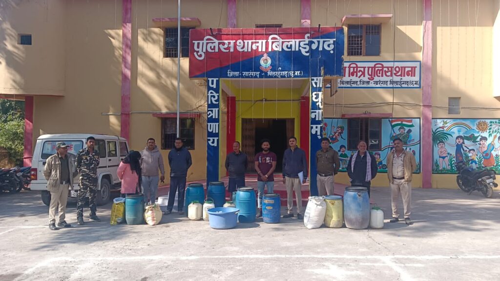 सारंगढ़ बिलाईगढ़ पुलिस कप्तान अंजनेय वार्ष्णेय के निर्देशन पर तथा अतिरिक्त पुलिस अधीक्षक निमिषा पांडे, अनुविभागीय अधिकारी पुलिस विजय ठाकुर के मार्गदर्शन में थाना बिलाईगढ़ पुलिस द्वारा थाना सरसींवा स्टॉप वह पुलिस कार्यालय स्टाफ के साथ संयुक्त कार्रवाई करते हुए संयुक्त टीम द्वारा दिनांक 10,12,25 को मुखबिर से सूचना पर थाना बिलाईगढ़ के ग्राम बगलोटा में भारी मात्रा में अवैध महुआ शराब रखकर बिक्री करने की सूचना पर रेड कार्यवाही कर आरोपीगण के कब्जे से कुल 311 लीटर हाथ भट्टी का बना महुआ शराब कीमती 31100 रू को समक्ष गवाह के जप्त कर आरोपीगण के विरुद्ध अपराध धारा 34(2)आबकारी एक्ट के तहत कार्यवाही कर विधिवत गिरफ्तार कर न्यायालय पेश किया गया ,जिसे मा,न्यायालय द्वारा न्यायिक रिमांड पर भेजा गया