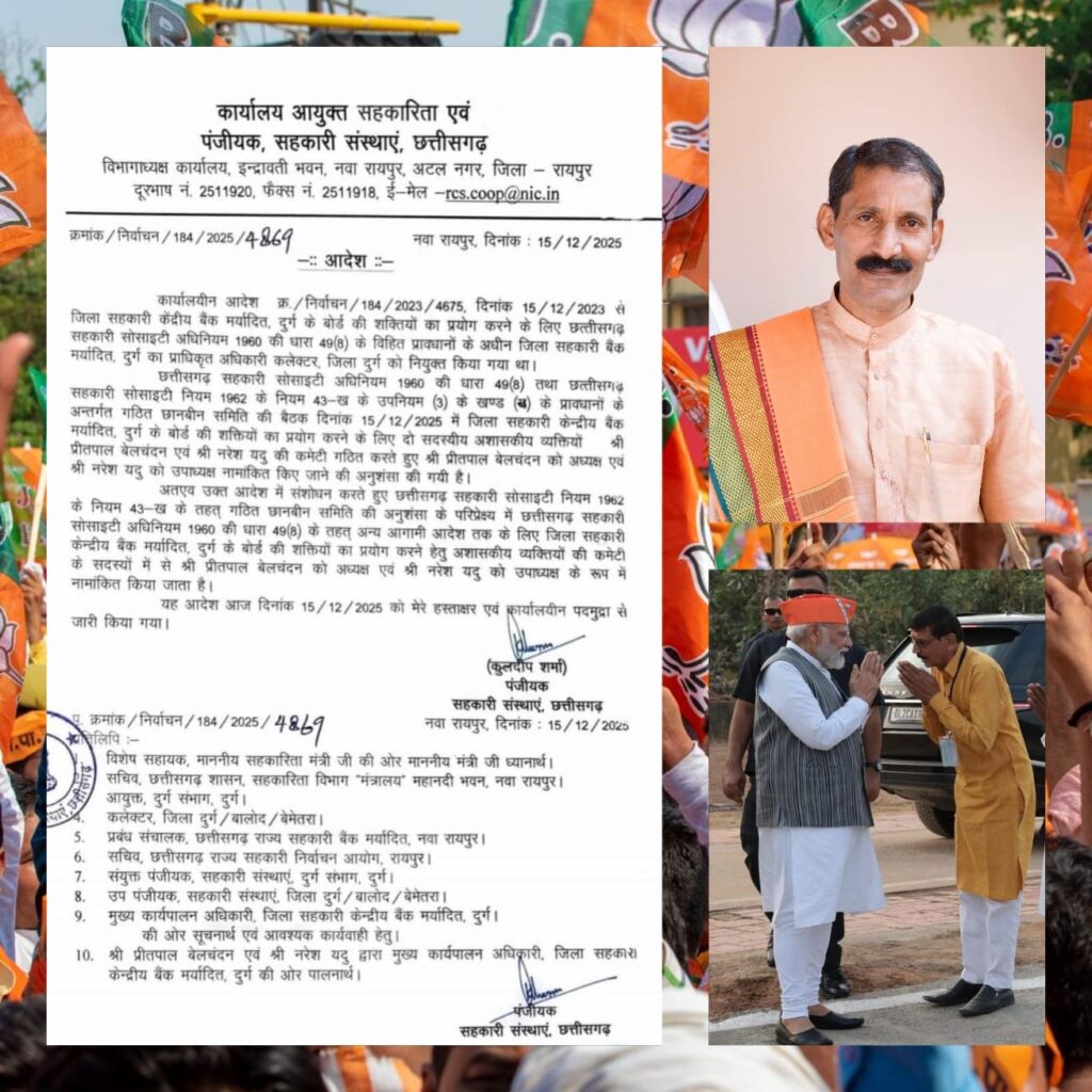 बलोद-CM विष्णुदेव साय ने जिला सहकारी बैंकों में लंबे समय बाद राजनीतिक नेतृत्व की वापसी कराई है। राज्य सरकार के जारी निर्देश के मुताबिक, Durg जिला सहकारी केन्द्रीय बैंक में अध्यक्ष प्रीतपाल बेलचंदन और उपाध्यक्ष नरेश यदु को बनाया गया है।