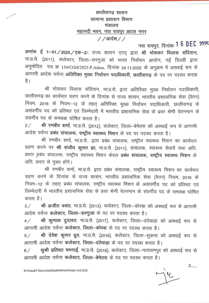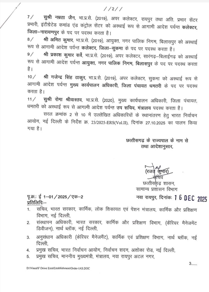 छत्तीसगढ़ – प्रशासनिक दृष्टि से छत्तीसगढ़ के कई जिलों के कलेक्टर बदले गए लगभग दर्जन भर से जिलों से प्रशासनिक फेरबदल हुआ है देखे सूची