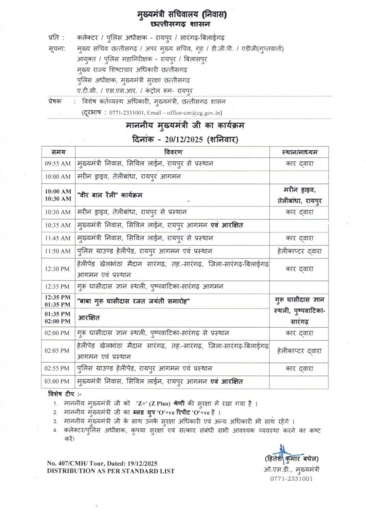 सारँगढ़ – सारँगढ़ में सन्त शिरोमणि परम् पूज्य गुरुघासी दास बाबा के जयंती कार्यक्रम में प्रदेश के मुखिया विष्णु देव साय कल सारँगढ़ बिलाईगढ़ जिले के सारँगढ़ ज्ञान स्थल में तीन दिवसीय जयंती समारोह में शामिल होंगे