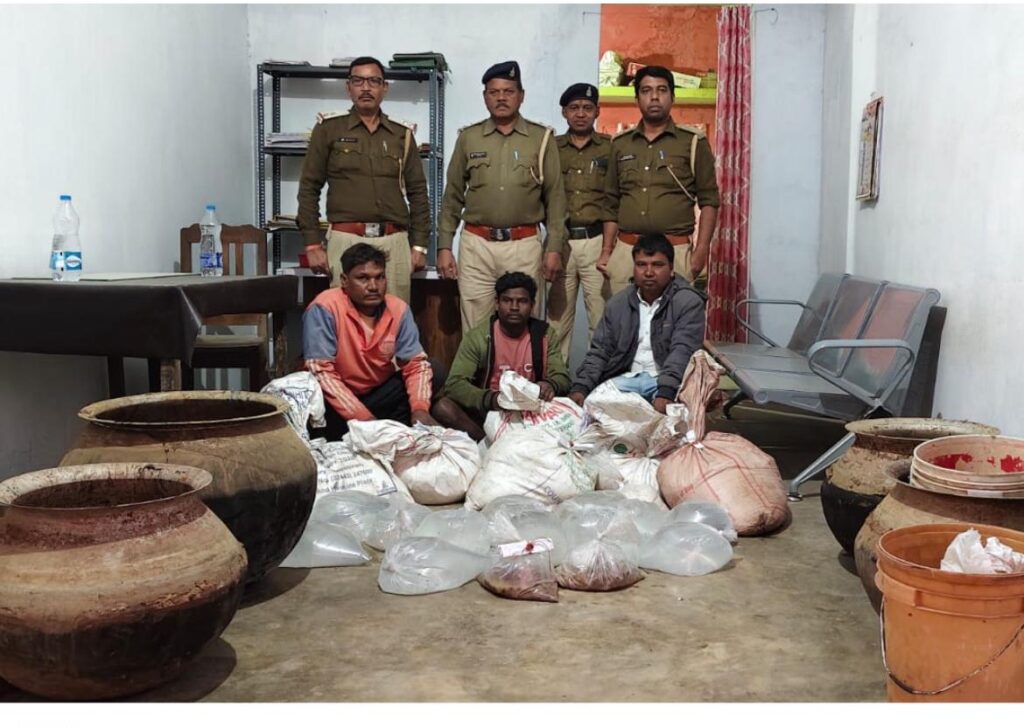 सारंगढ़ बिलाईगढ़ – आबकारी आयुक्त सुश्री आर.संगीता के निर्देश के तारतम्य में कलेक्टर डॉ संजय कन्नौजे एवं जिला आबकारी अधिकारी श्री संतराम वर्मा जिला सारंगढ़ -बिलाईगढ़ के मार्गदर्शन में दिनांक 28/12/2025 को अवैध मदिरा के आसवन विक्रय एवं परिवहन पर प्रभावी नियंत्रण हेतु वृत्त के ग्राम गस्त के दौरान मुखबिर से आबकारी विभाग वृत्त सारंगढ़/सरिया/बरमकेला को सूचना मिली की लातनाला किनारे गुड़ेली मे कुछ व्यक्तियों द्वारा कच्ची महुआ शराब बना रहा है और प्लास्टिक पन्नियों में पैक किया जा रहा है l सूचना की पुष्टि की गई इसके पश्चात लातनाला में आबकारी टीम एवं गवाहों के साथ बताए गए स्थान में उपस्थित हुए l मौके में सुन्दरलाल जोल्हे, गोलू मांझी तथा ईश्वर मांझी के द्वारा लातनाला किनारे कच्ची महुआ शराब बनाकर प्लास्टिक पन्नियों में पैक कर रहे थे।आरोपी के आधिपत्य की विधिवत तलाशी लेने पर उपरोक्तानुसार सामाग्री बरामद किया गया l बरामद कच्ची महुआ शराब को गवाहों के समक्ष मौके में परीक्षण कर कब्जा आबकारी लिया गया तथा महुआ लाहन को संधारण परिवहन योग्य नहीं होने से सैम्पल लिया जाकर कब्जे आबकारी लिया।आरोपीयों के विरुद्ध छत्तीसगढ़ आबकारी अधिनियम धारा 34(1) क,च,34(2) 59क , का प्रकरण कायम कर विवेचना में लिया गया है l आरोपीयों को अग्रिम कार्यवाही हेतु न्यायालय के समक्ष पेश किया जा रहा हैं l